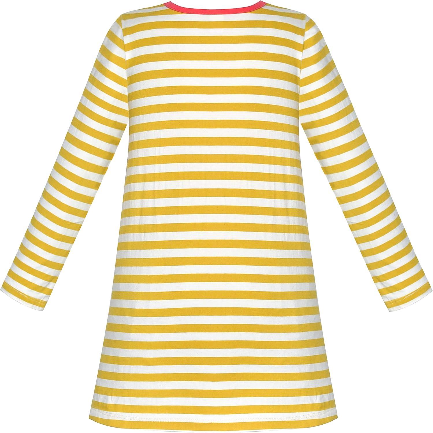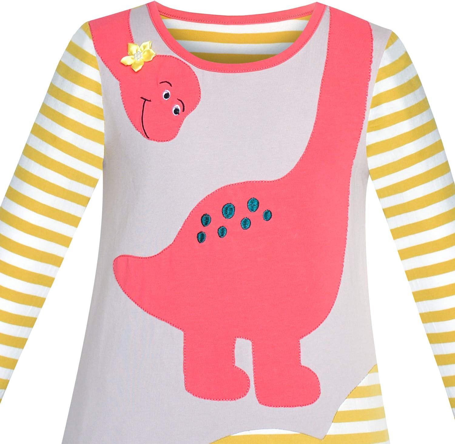 Sunny Fashion Girls Casual Dress Cotton Long Sleeve Kite Cloud Embroidered(Yellow Dinosaur)