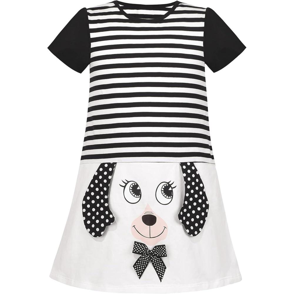 Sunny Fashion Girls Casual Dress Cotton Short Sleeve Swan Embroidered Size 2-6(Black White)