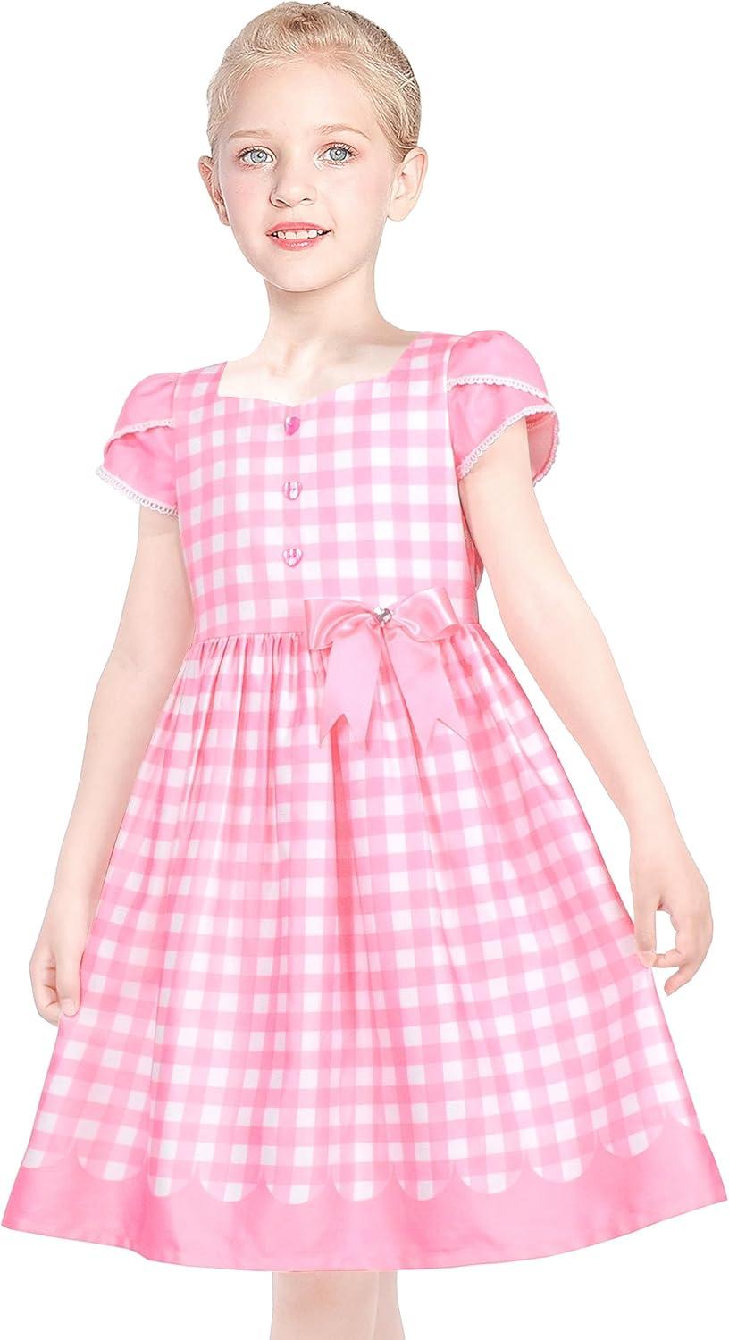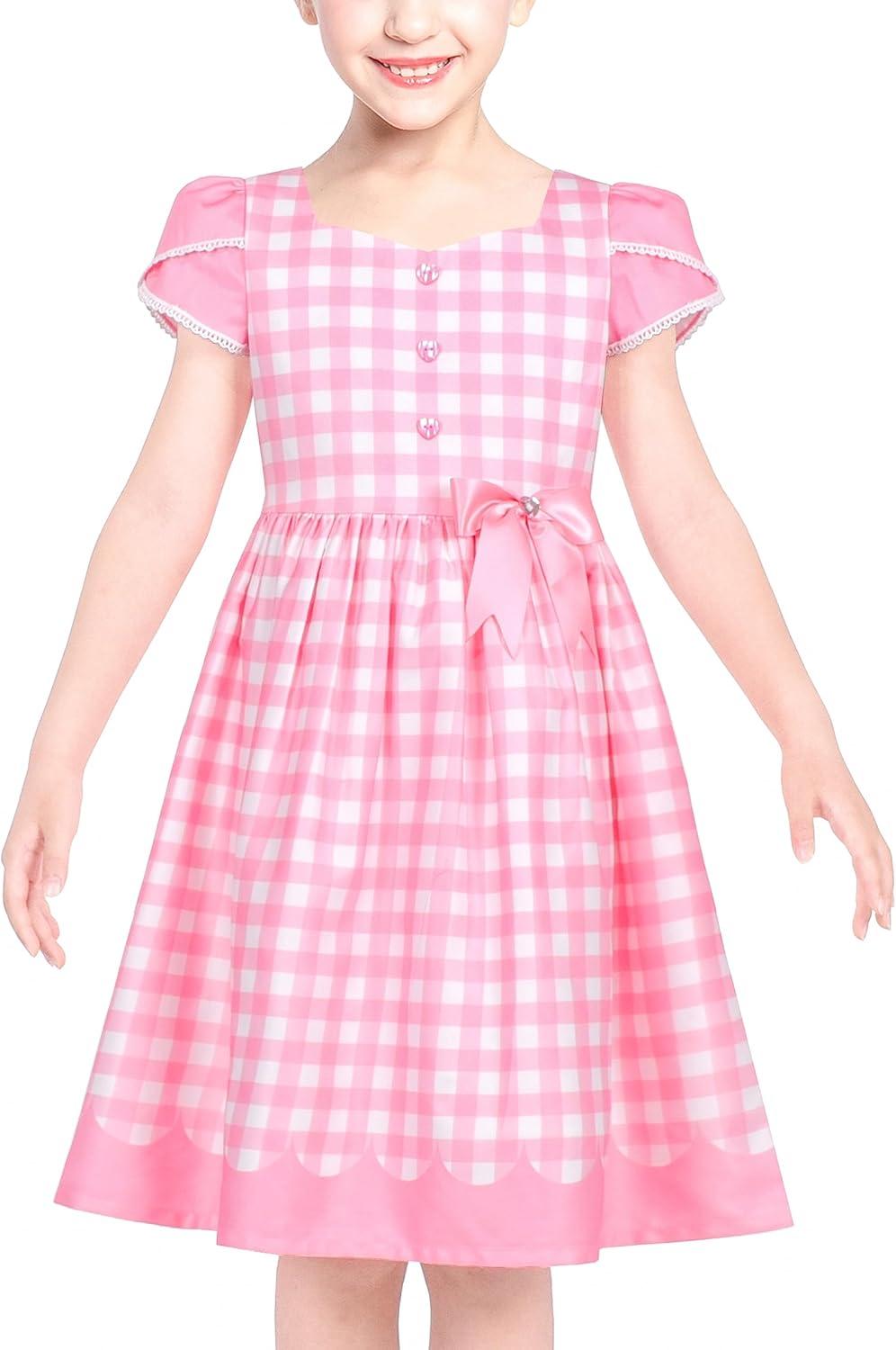 Quality dress made with cotton blend material, very comfortable. Blue and pink polka dot print with lace trim. Zipper back for easy on. Machine washable. Knee length. Following size means age ranges for girls, They are for general guidance only. For most accurate fit, we recommend checking detailed size measurement before purchase.