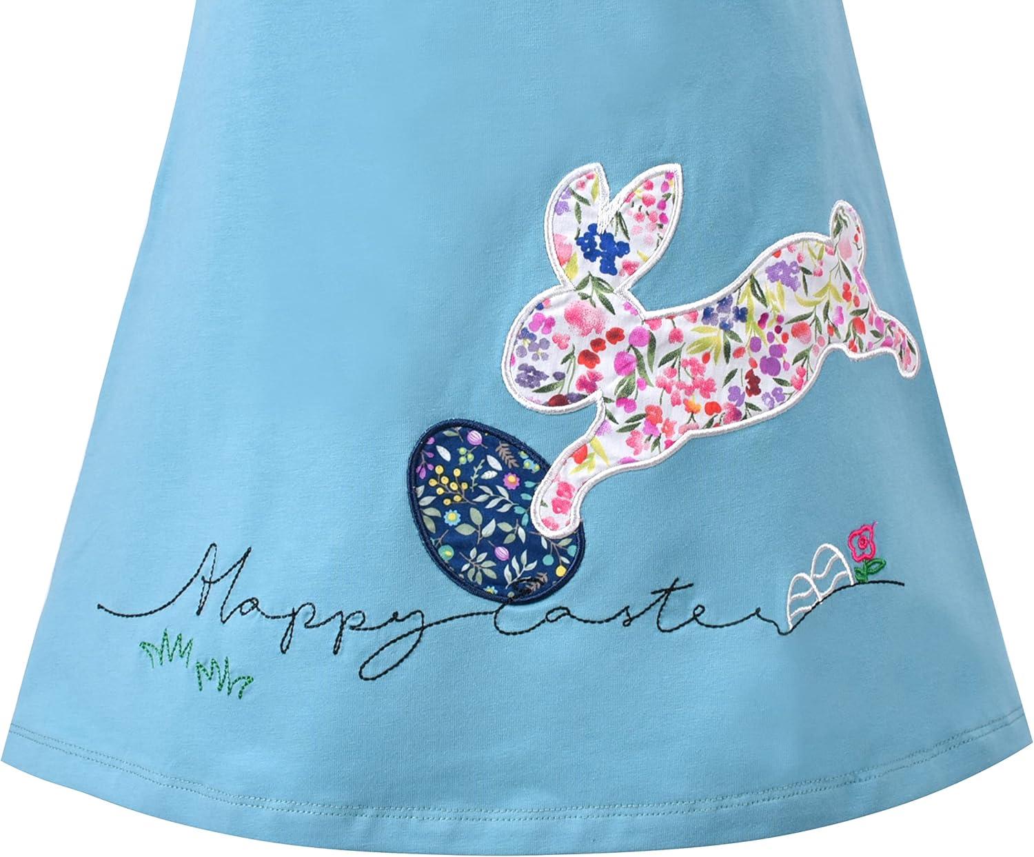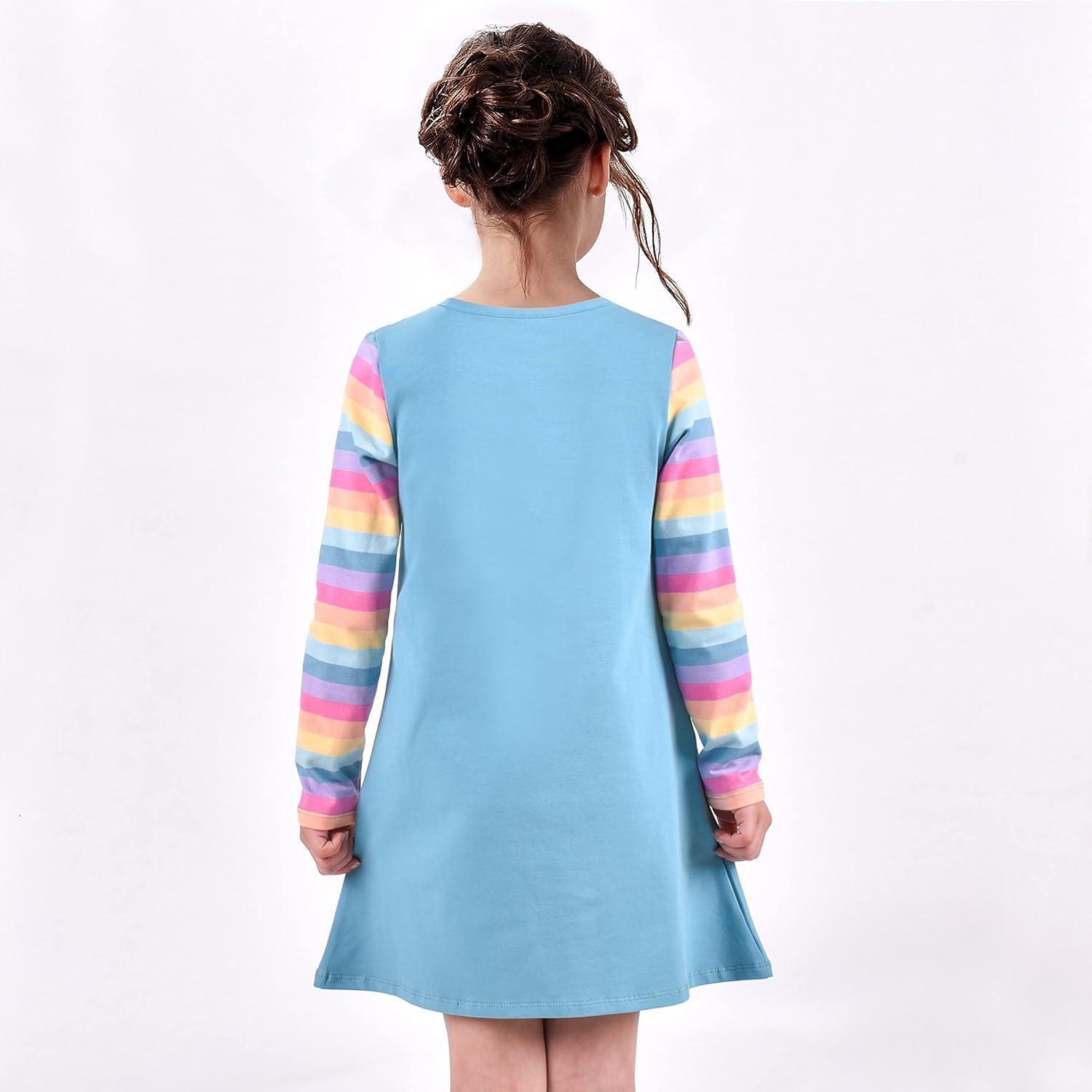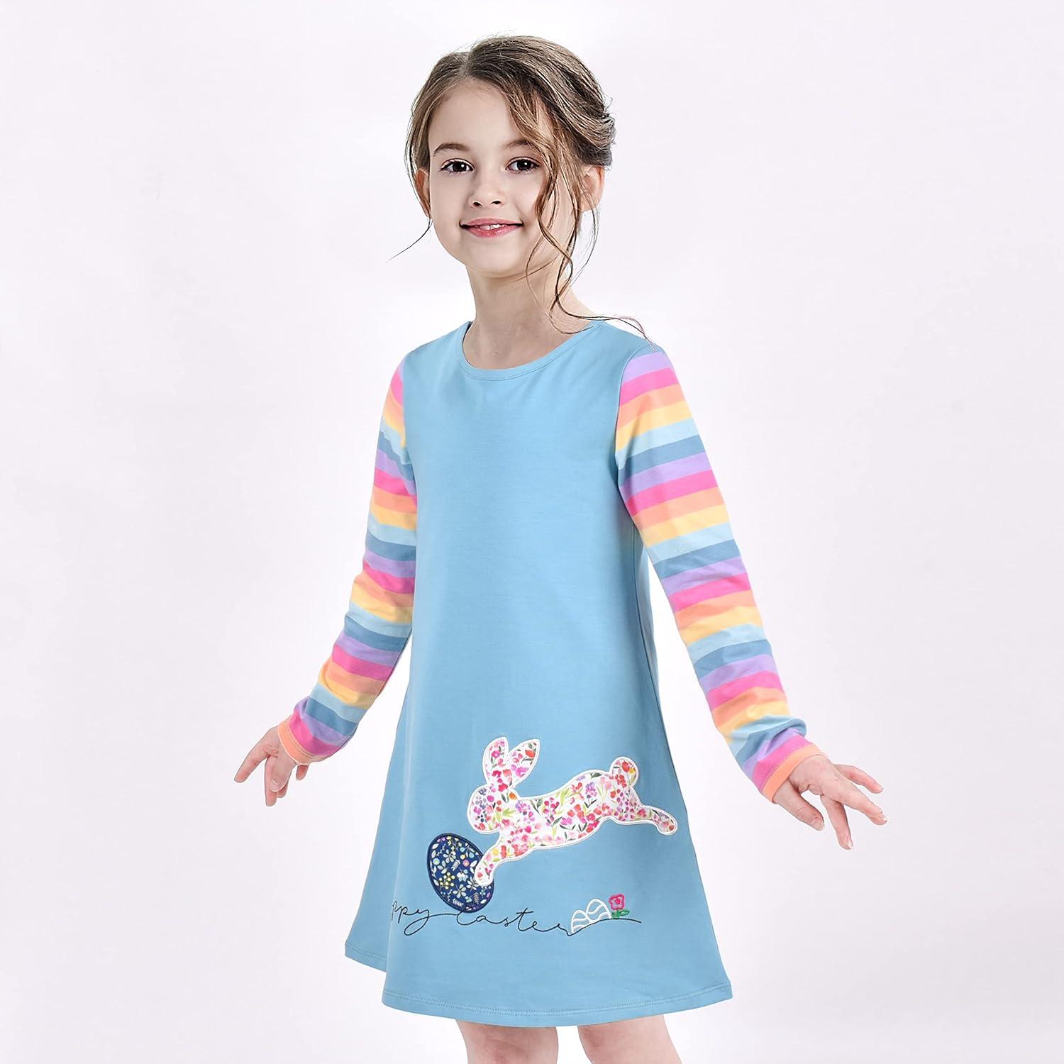 Sunny Fashion Girls Dress Colorful Daisy Flower Rainbow Long Sleeve Cotton(Blue Bunny)