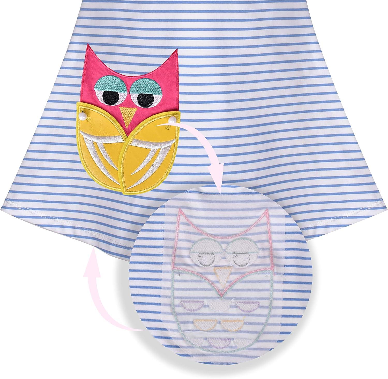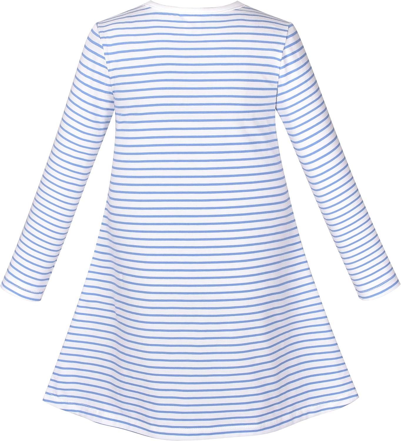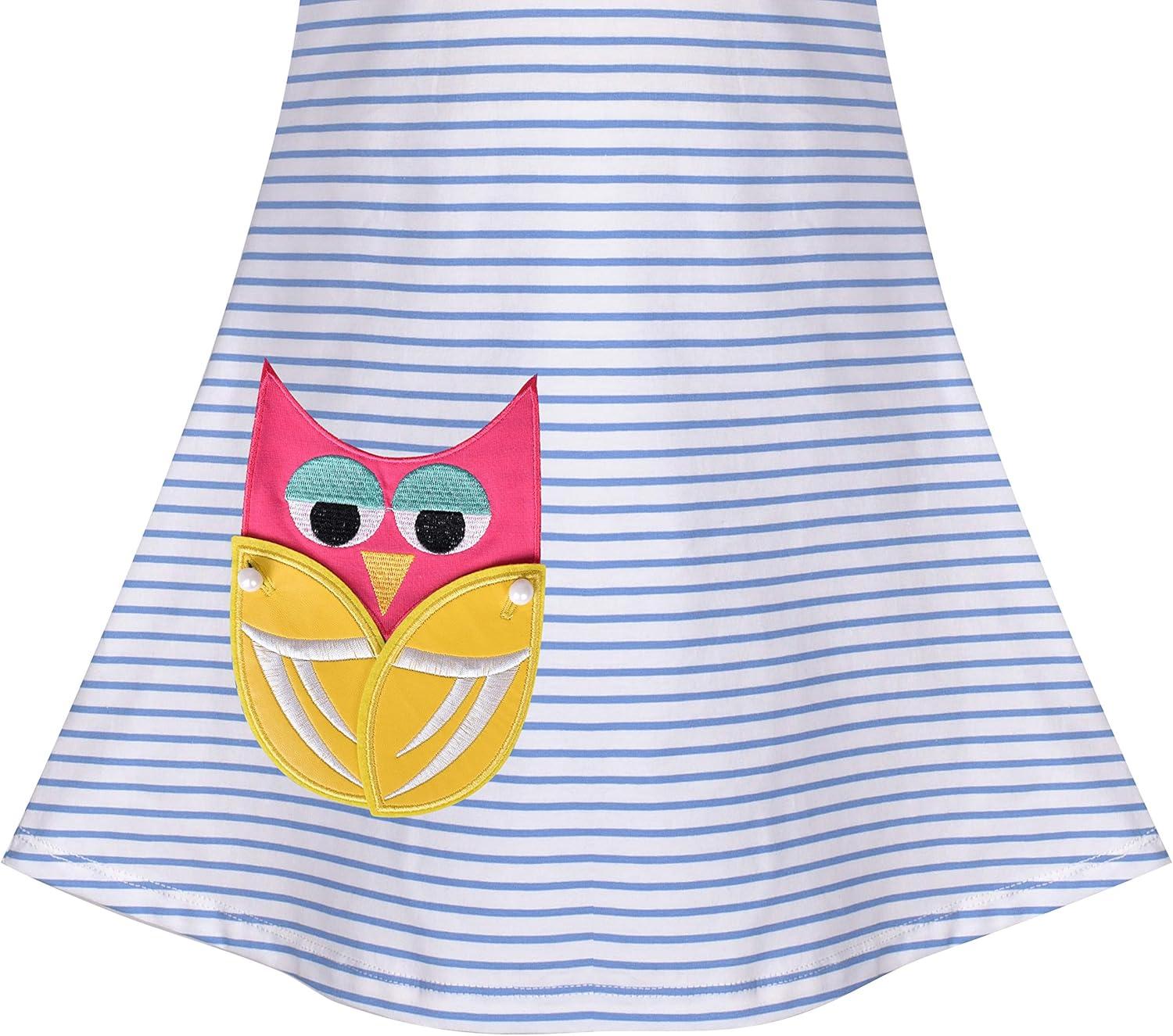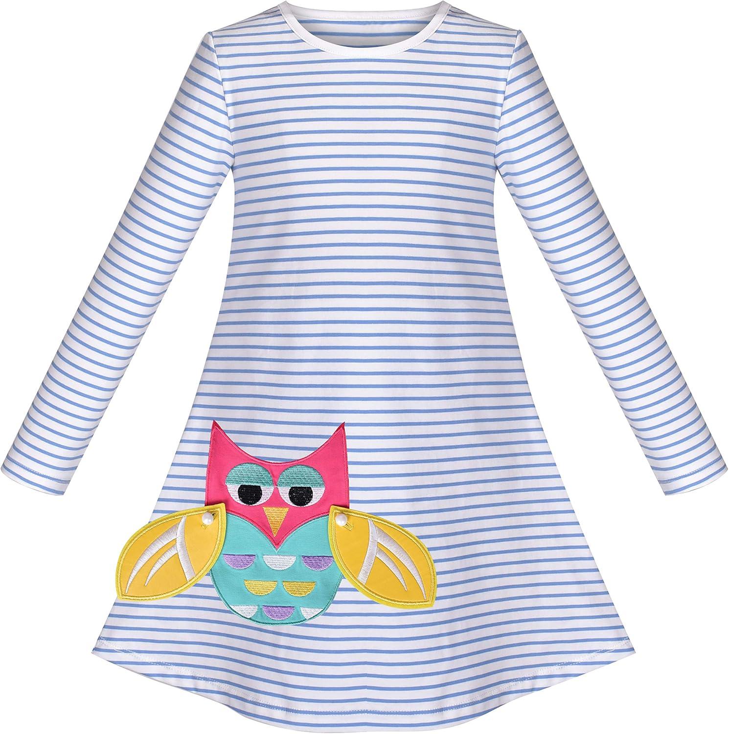 Sunny Fashion Girls Dress Colorful Daisy Flower Rainbow Long Sleeve Cotton(Blue Striped Owl)