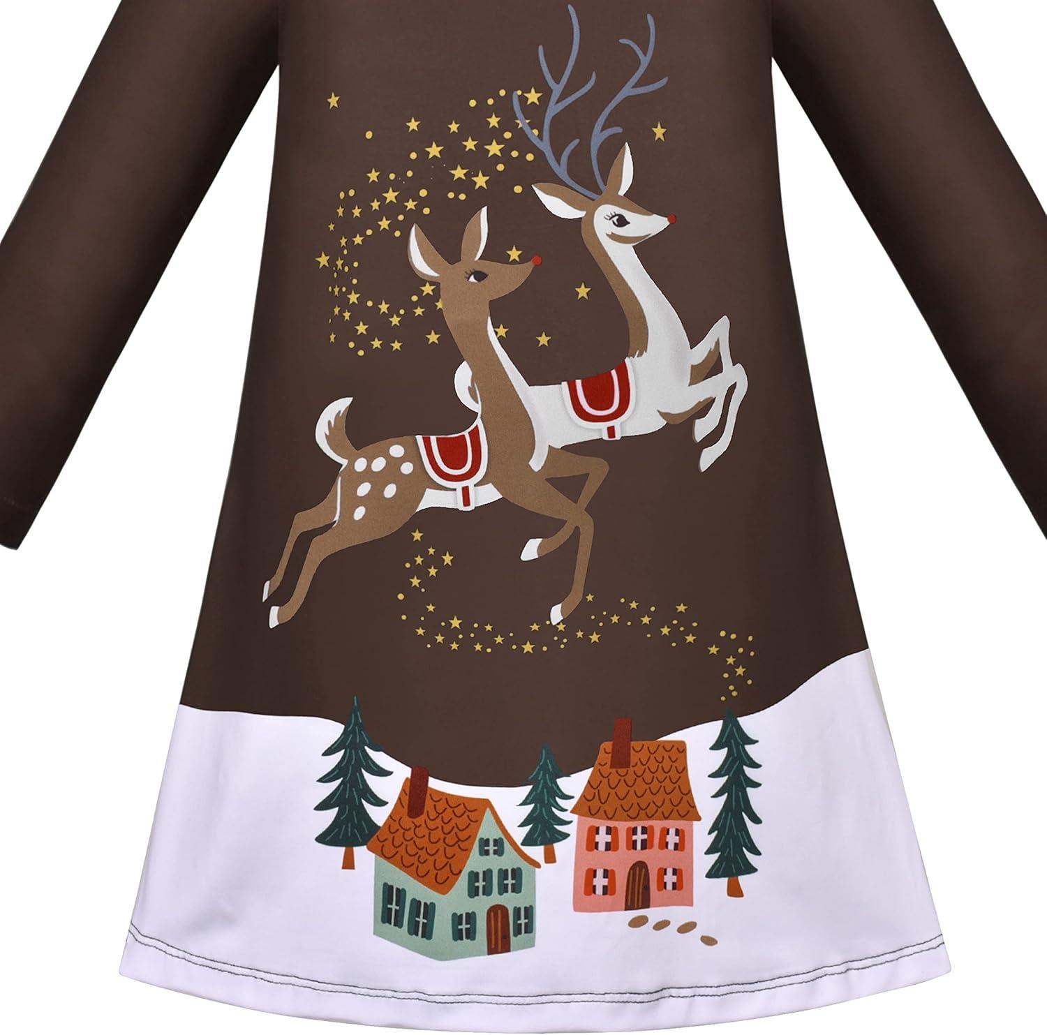 Sunny Fashion Girls Dress Colorful Daisy Flower Rainbow Long Sleeve Cotton(Brown)