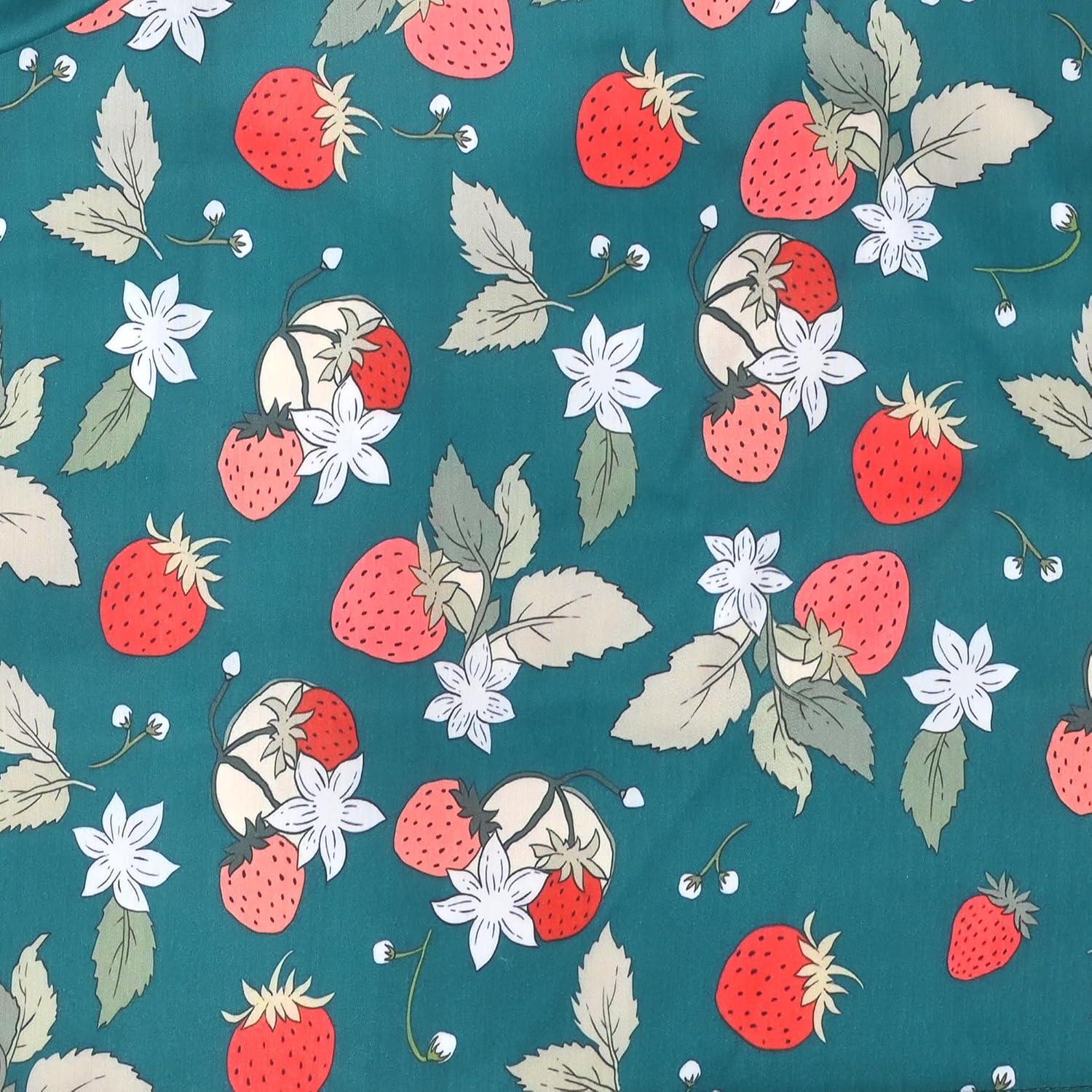 This girl's dress features a vibrant green color with a unique neckline. It has an all-over print of strawberries and flowers, creating a playful and cheerful look. A zigzag ribbon accents the waist, adding a distinct detail. The dress is sleeveless, making it suitable for warmer weather. Ideal for casual daily wear, it can be worn at picnics, birthday parties, family gatherings, summer outings or playdates.