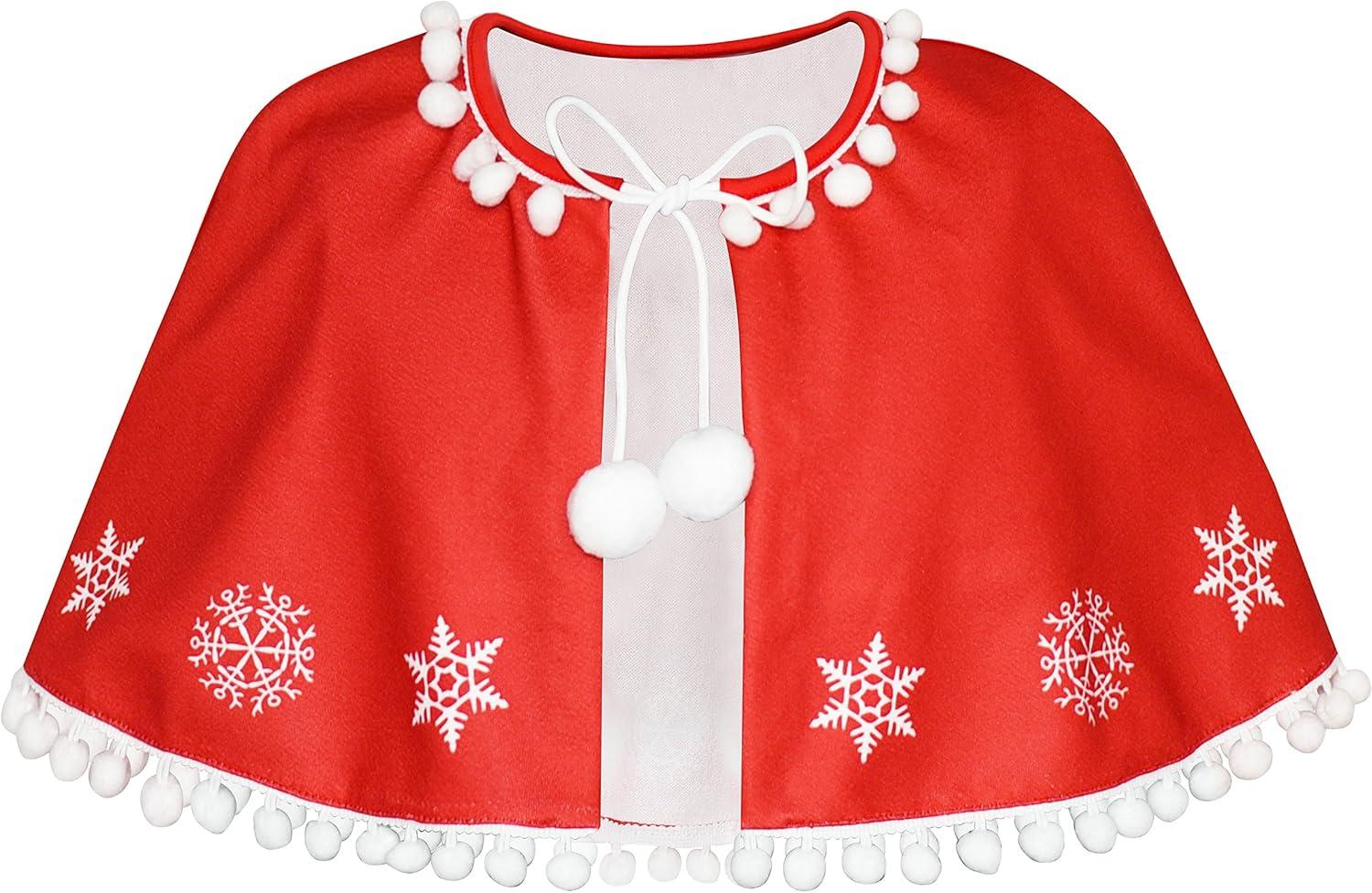 Unique design holiday-ready red dress with snowflake, snowman, reindeer and Santa print. The eye-catching cape trimmed with white ball. Perfect for your little girls' and big girls' Christmas and new year holiday wearing. Following size means age ranges for girls, they are for general guidance only. For most accurate fit, we recommend checking detailed measurement before purchase.