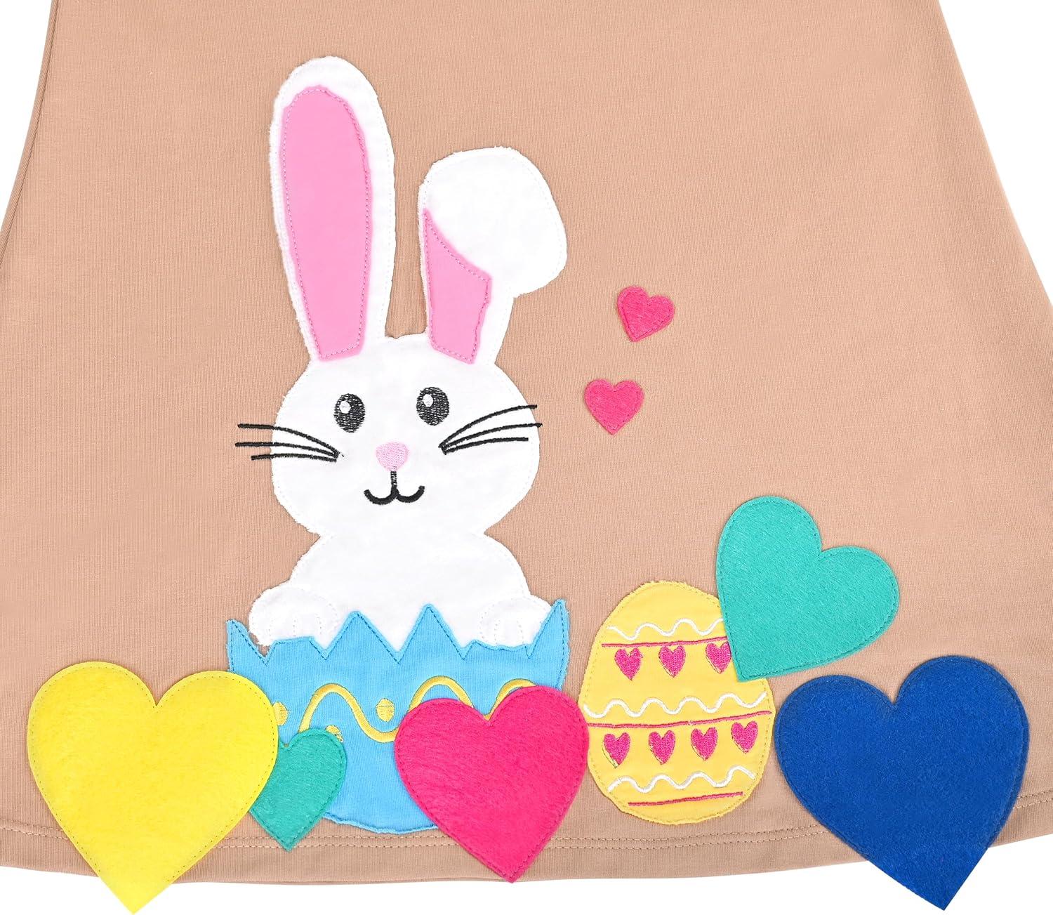 Sunny Fashion Girls Dress Long Sleeve Butterfly Color Contrast Casual Wearing(Bunny Hearts)