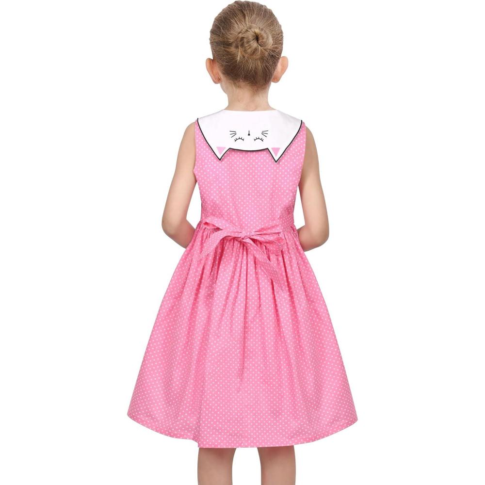 Sunny Fashion Girls Dress O-Neck Backless Smocked Embroidery Ruffle Vintage Sleeveless(Pink Polka Dot)