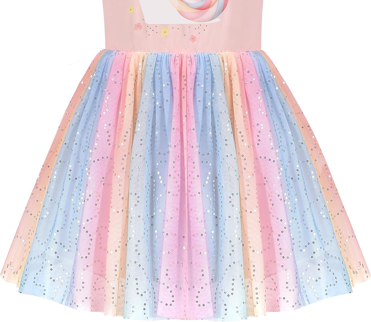 Sunny Fashion Girls Dress Purple Flower Summer Casual Dress Lace Size 6-14(Pink Flower Collar)