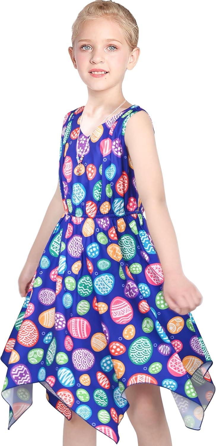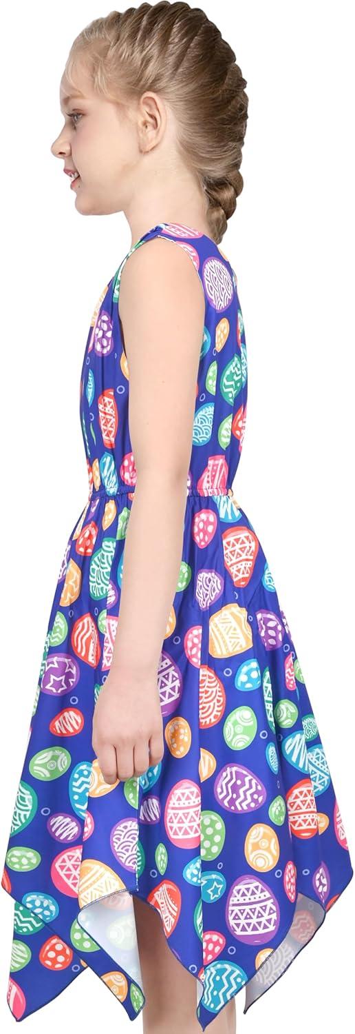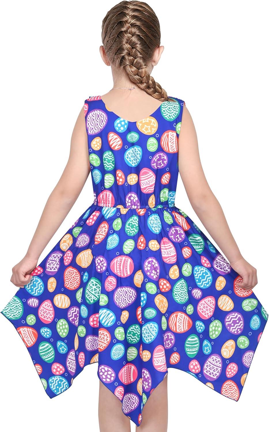 Sunny Fashion Girls Dress Rose Flower Double Bow Tie Party Sundress(Turquoise Unicorn)