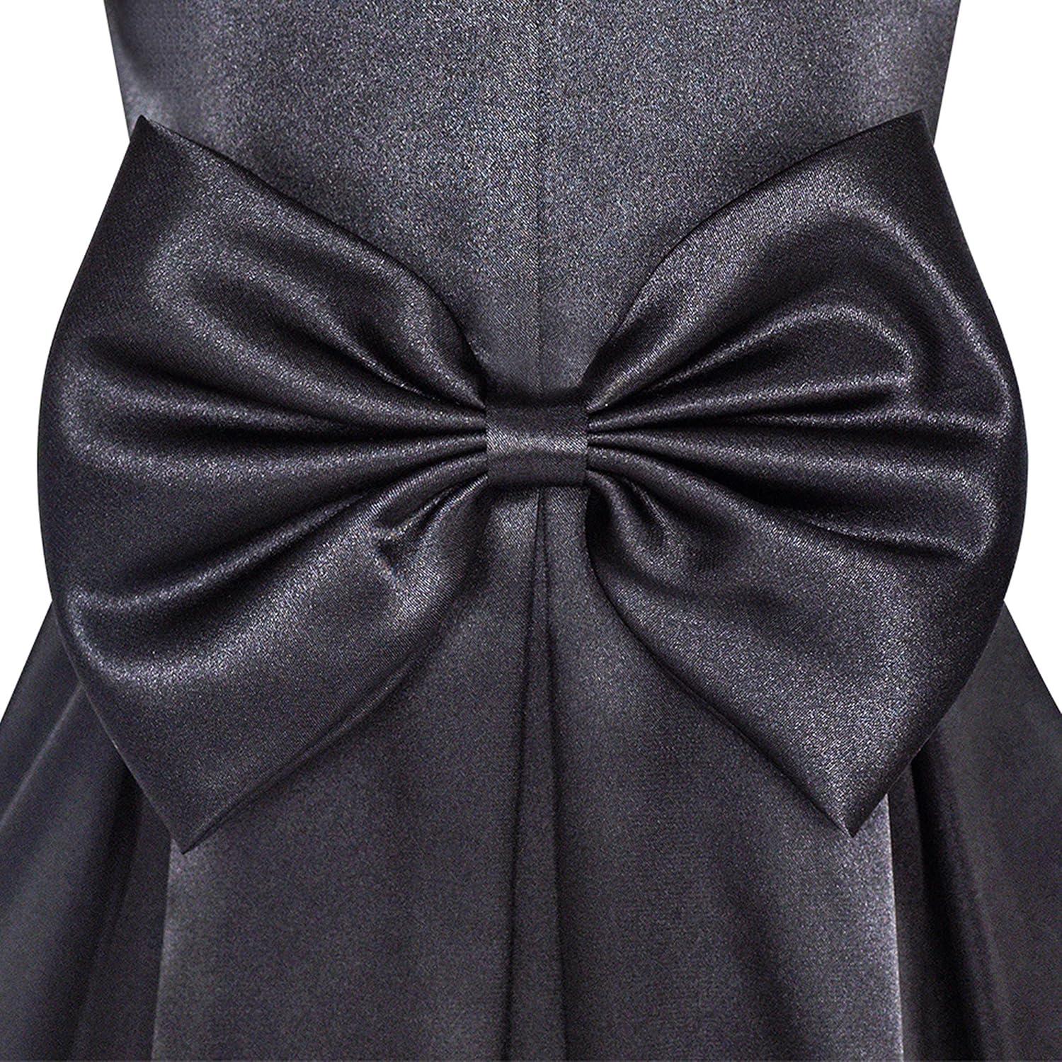 Sunny Fashion Girls Dress Satin Bow Tie One-Shoulder Party Size 6-12(Black)