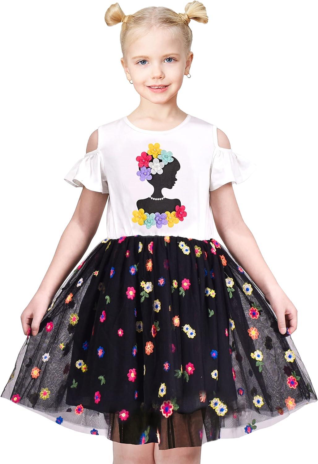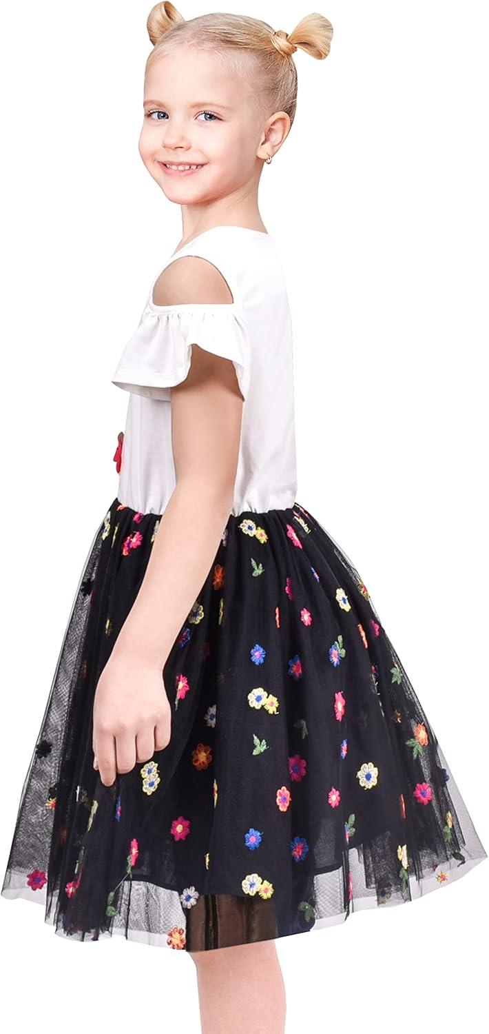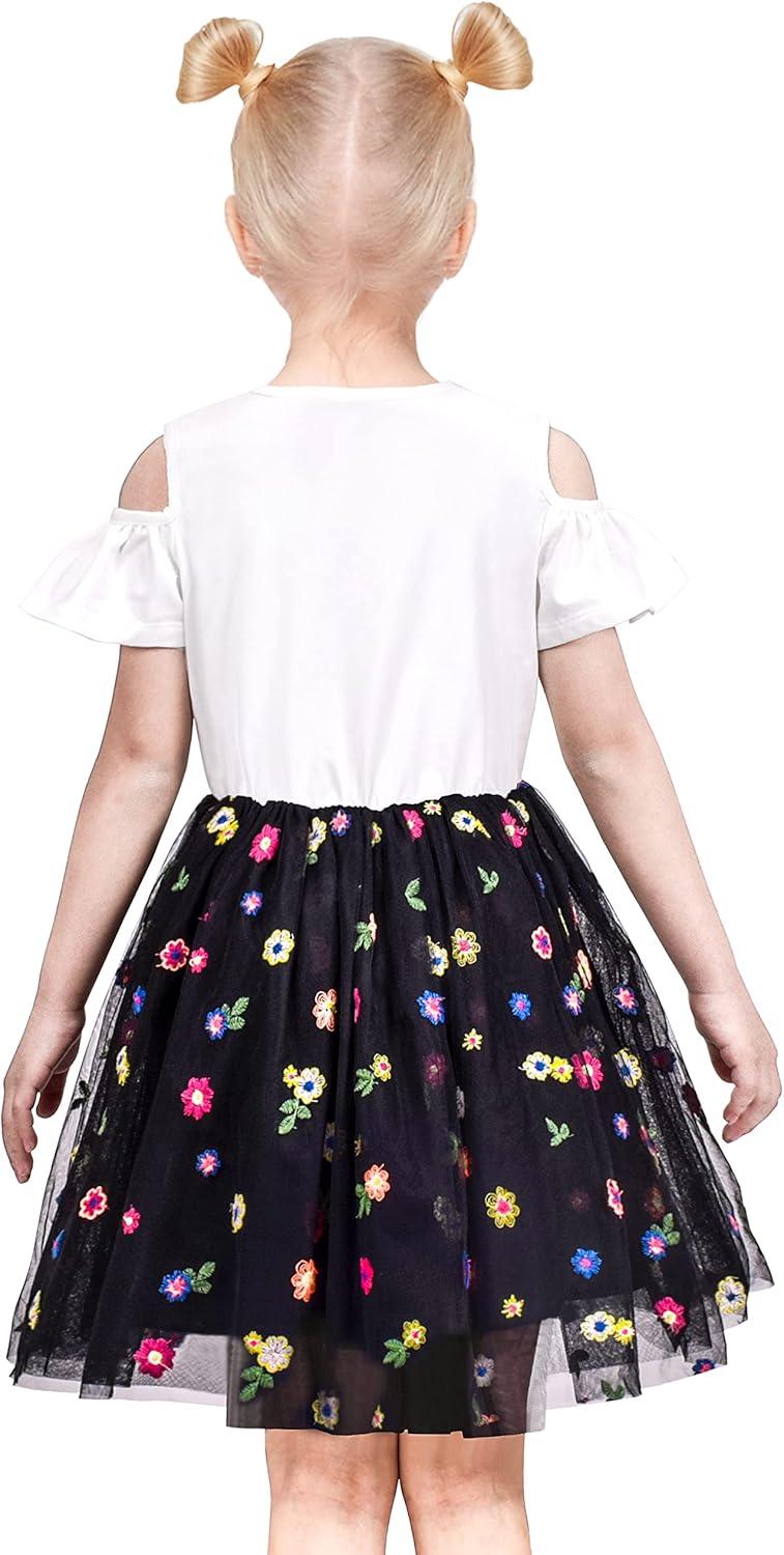 - Sunny Fashion Girls Dress Purple Short Sleeve Rainbow Tulle Skirt Birthday Party(Black Flowers)