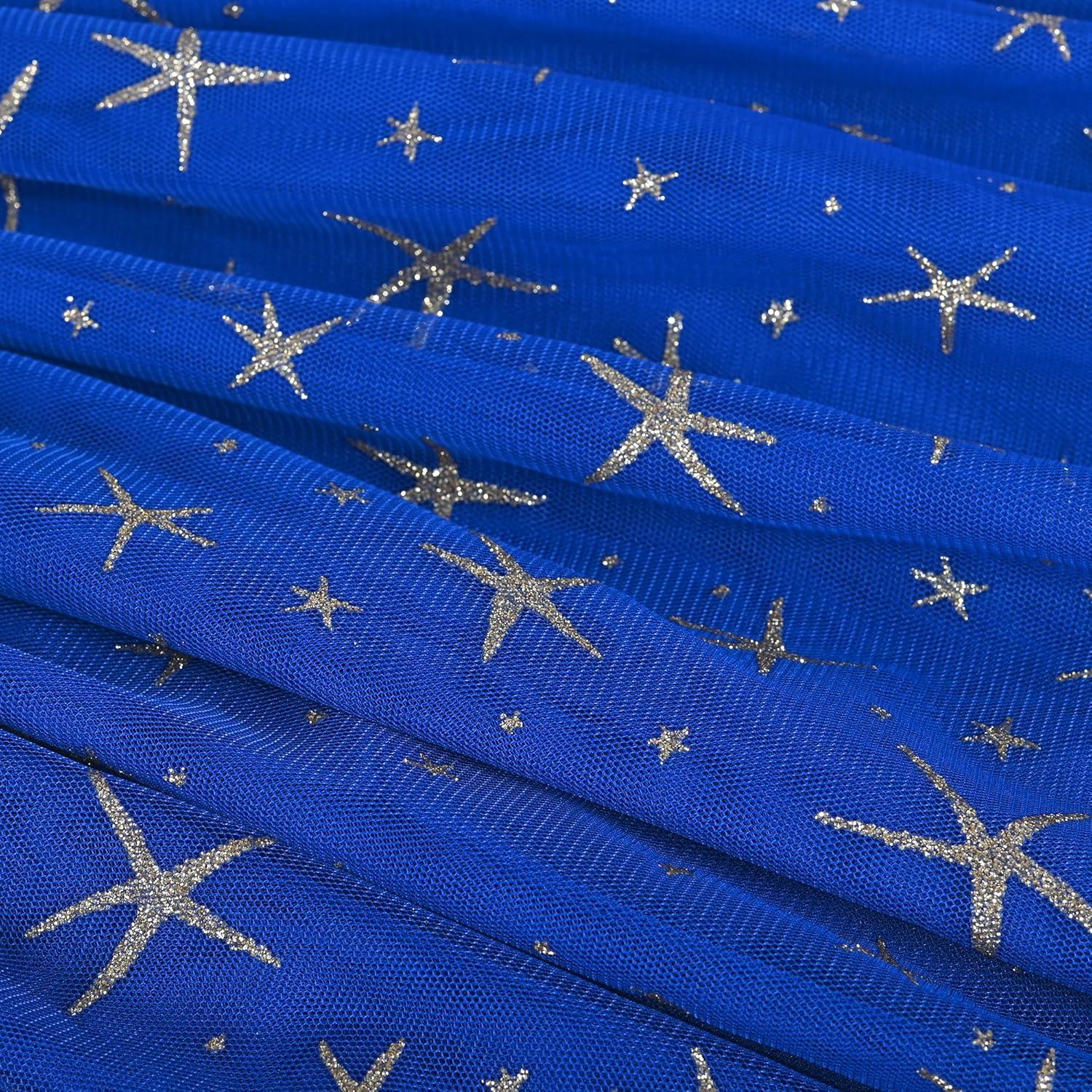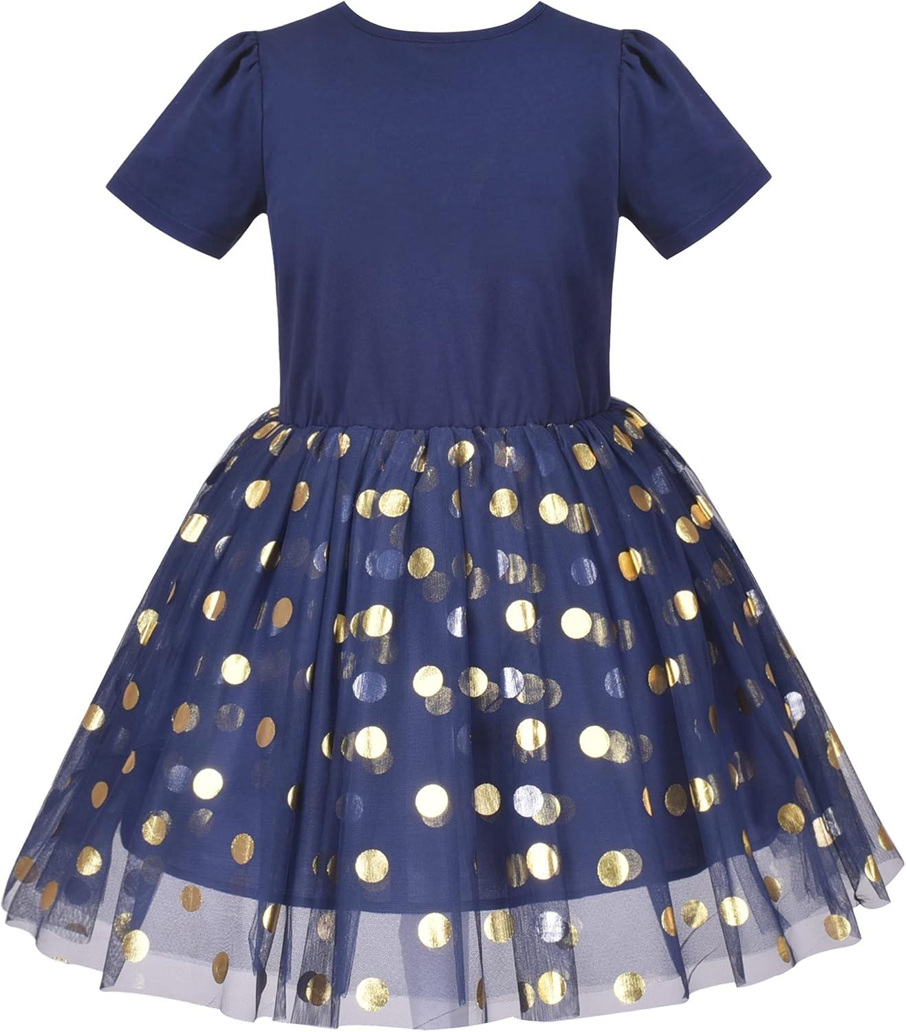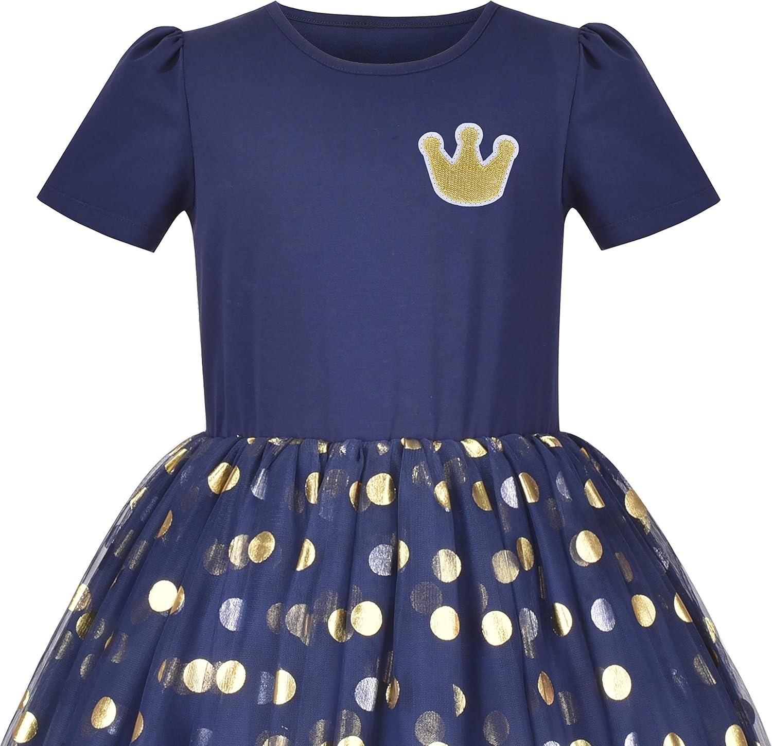 - Sunny Fashion Girls Dress Purple Short Sleeve Rainbow Tulle Skirt Birthday Party(Blue Gold)