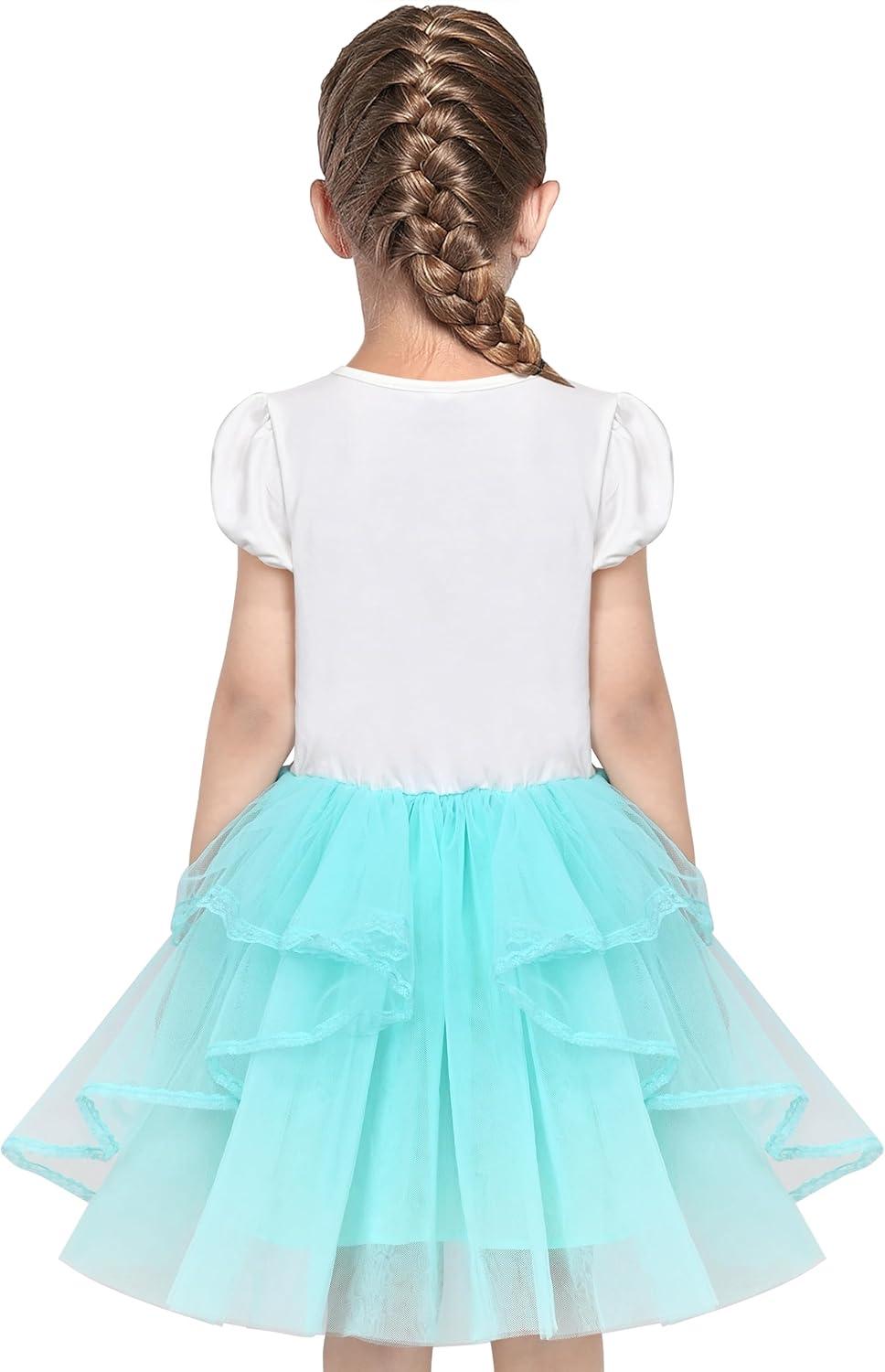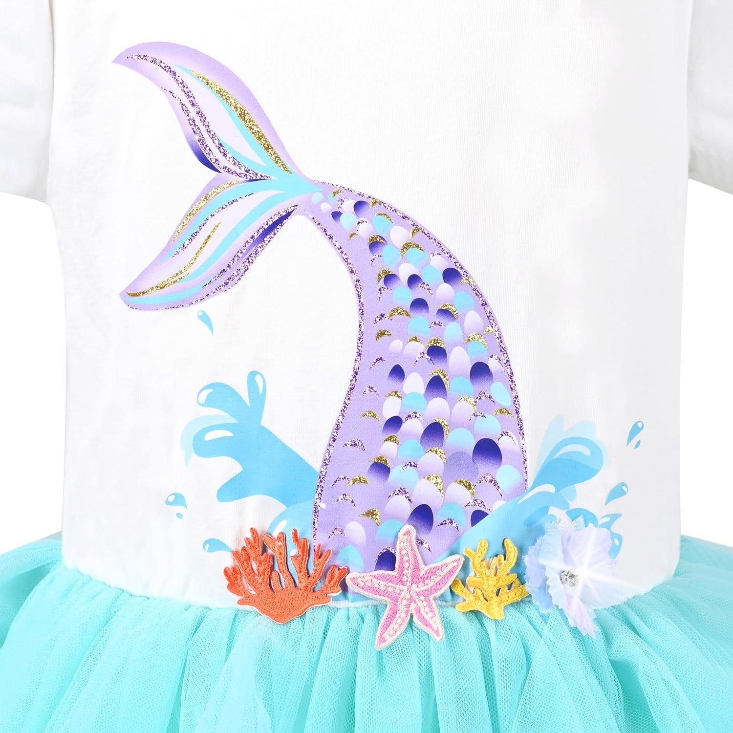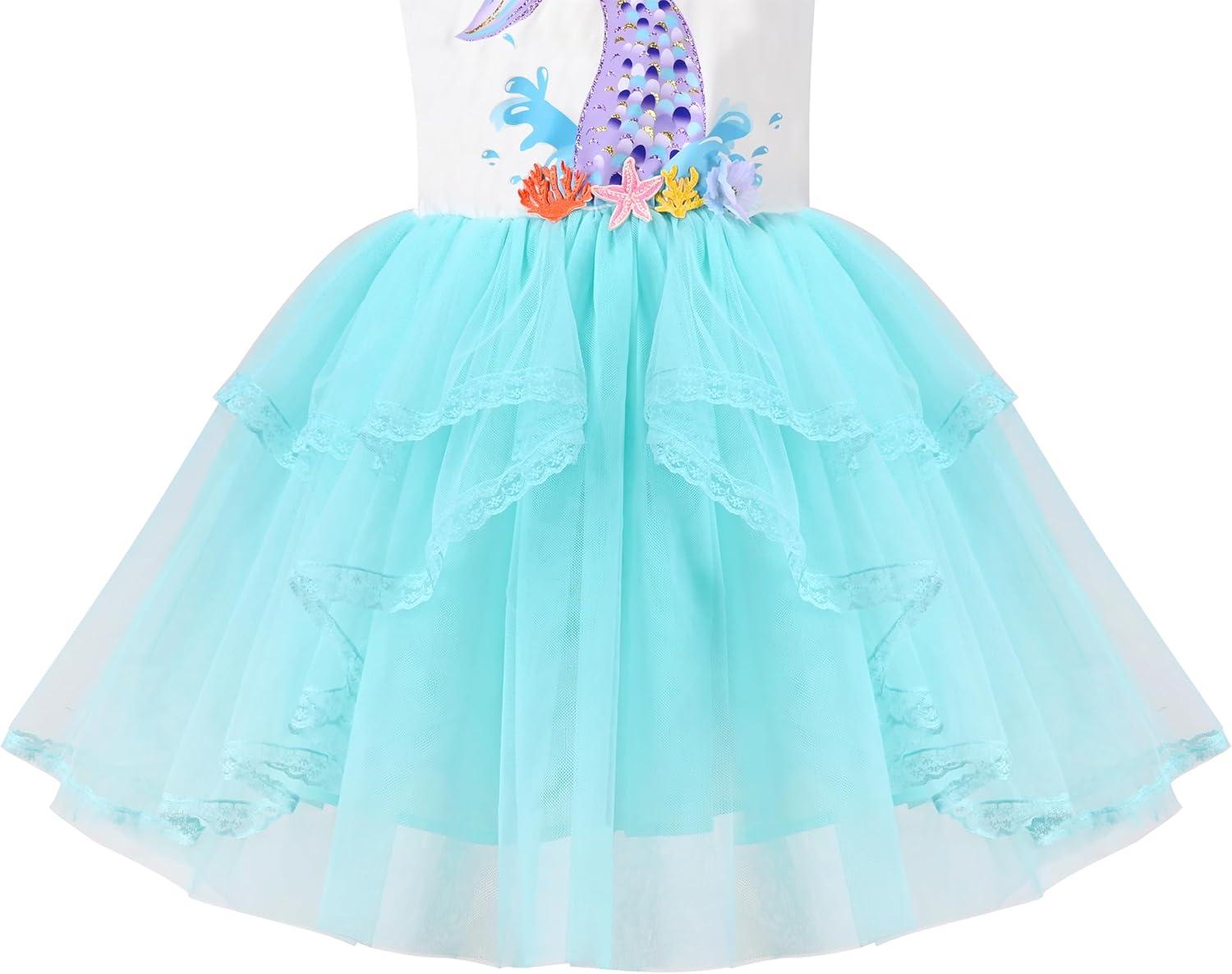 - Sunny Fashion Girls Dress Purple Short Sleeve Rainbow Tulle Skirt Birthday Party(Blue Mermaid)