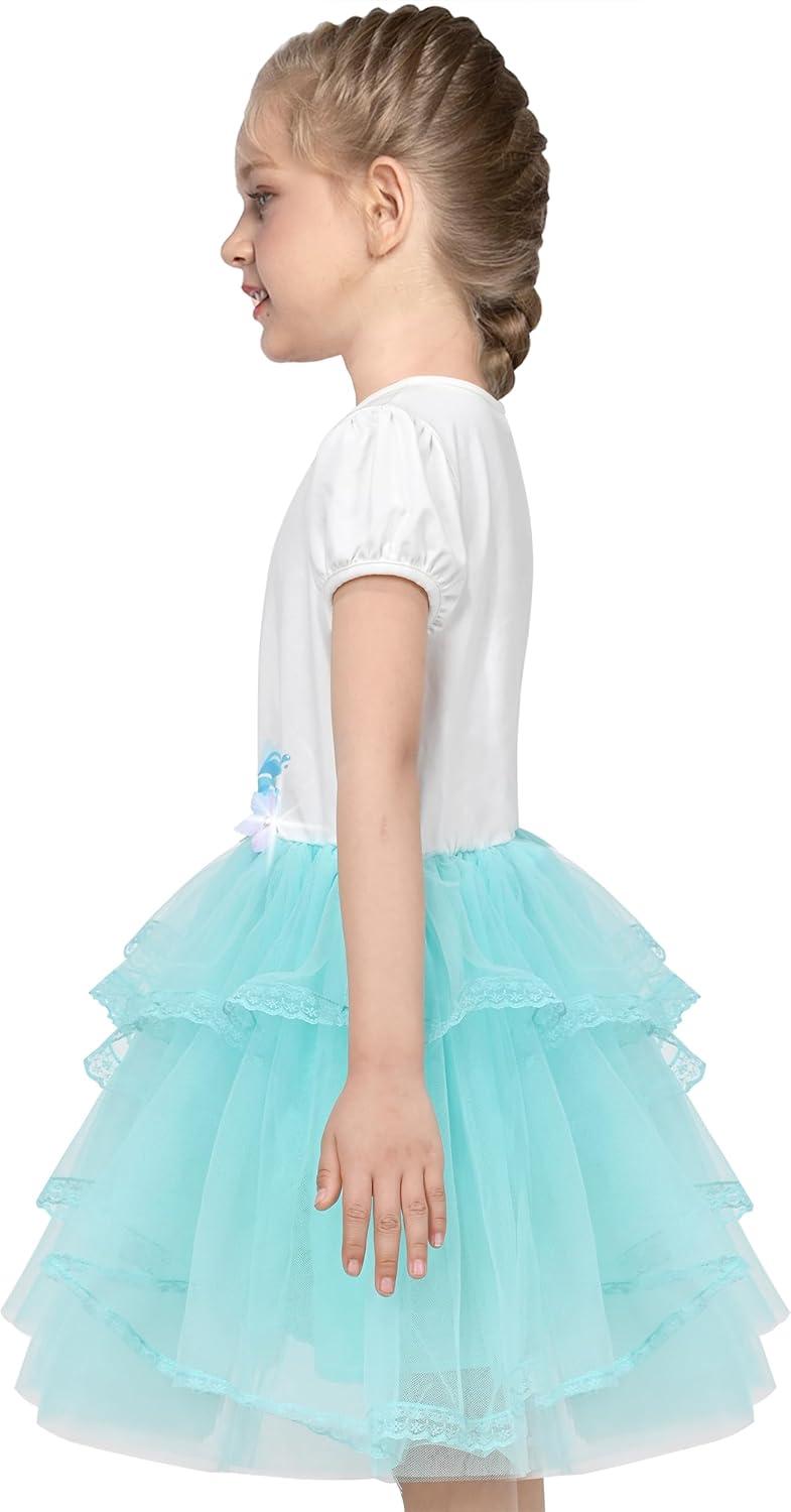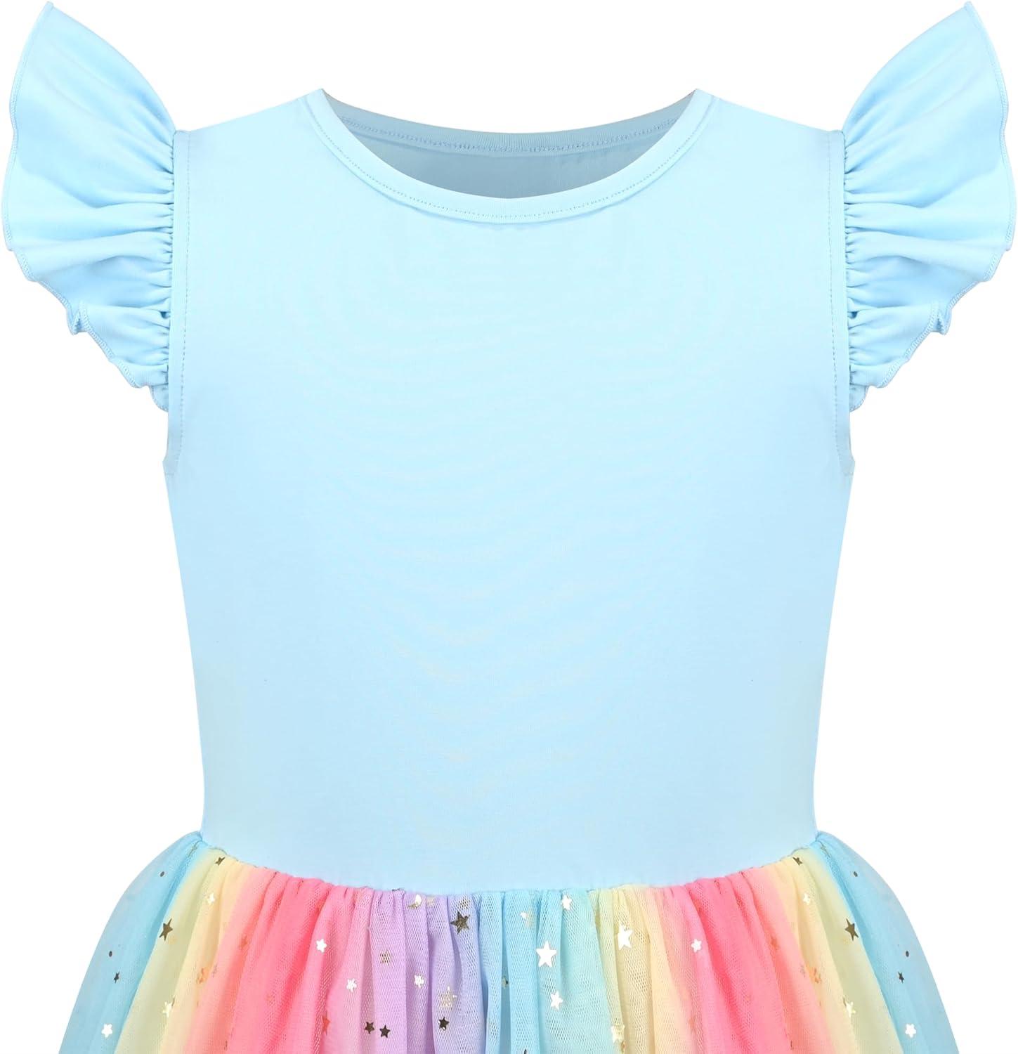 - Sunny Fashion Girls Dress Purple Short Sleeve Rainbow Tulle Skirt Birthday Party(Sky Blue)
