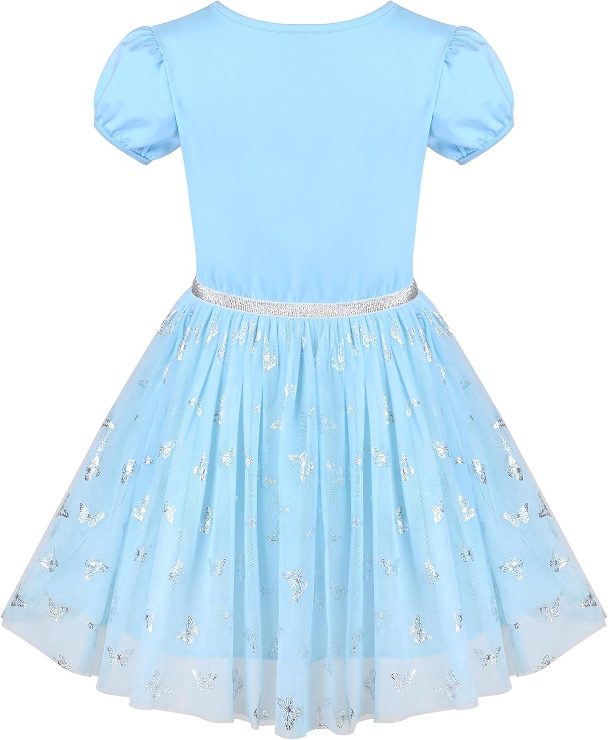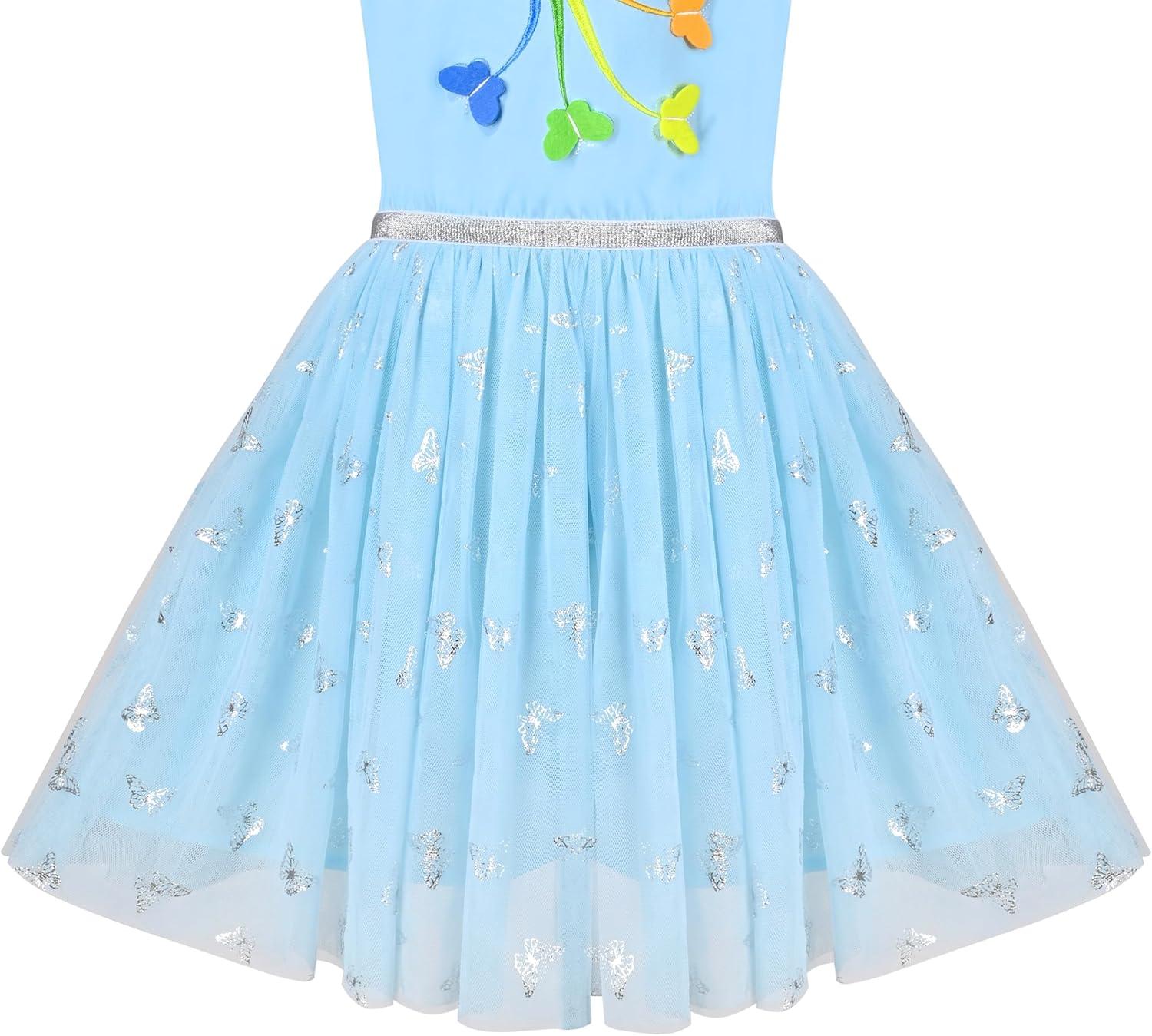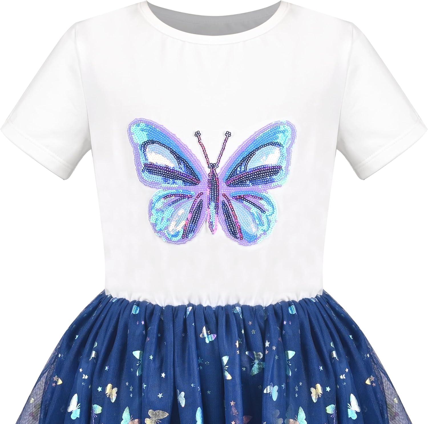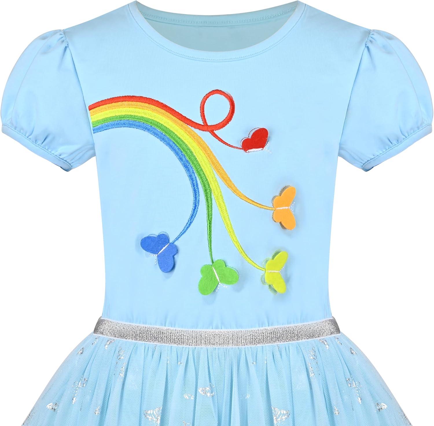 - Sunny Fashion Girls Dress Purple Short Sleeve Rainbow Tulle Skirt Birthday Party(Blue Sequin Butterfly)