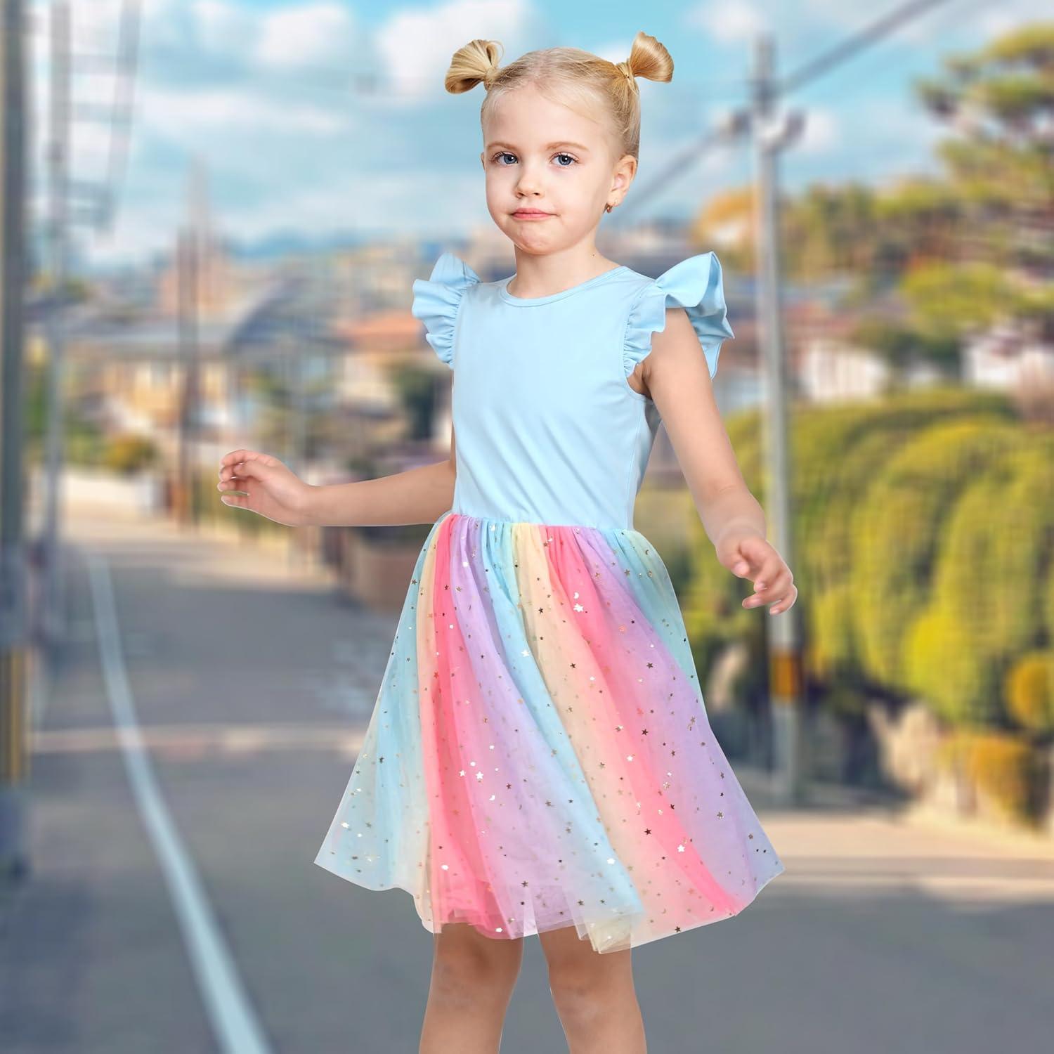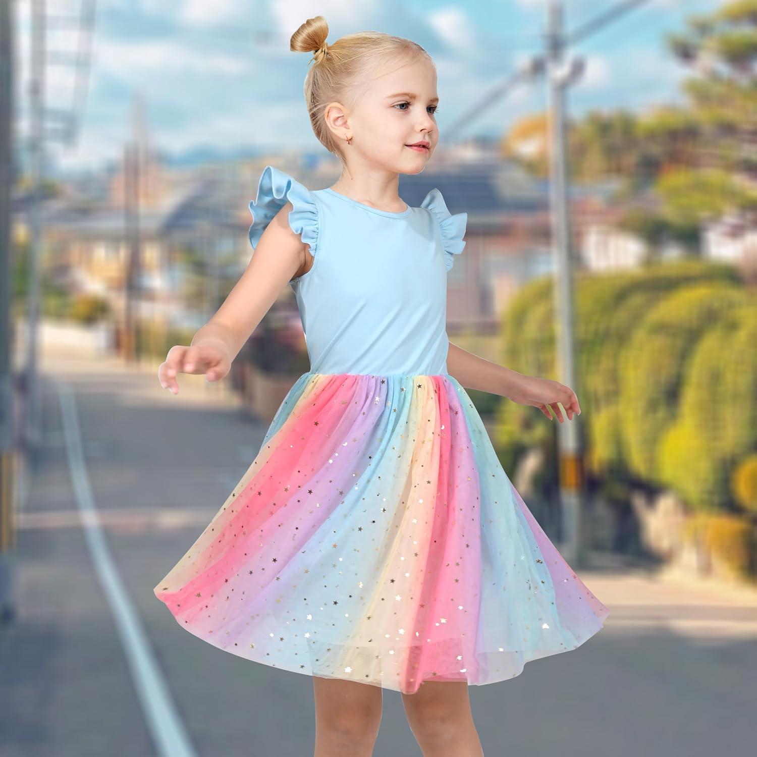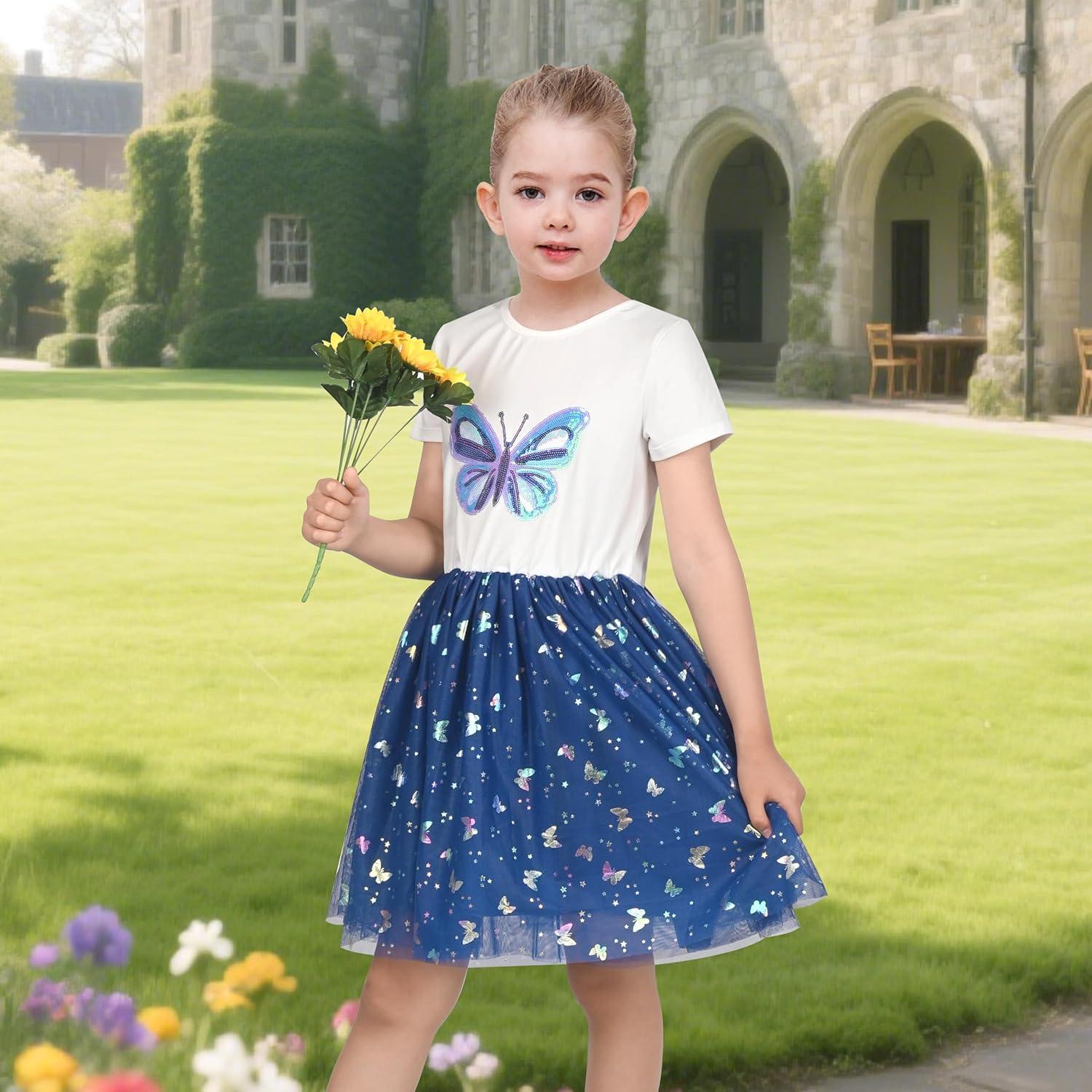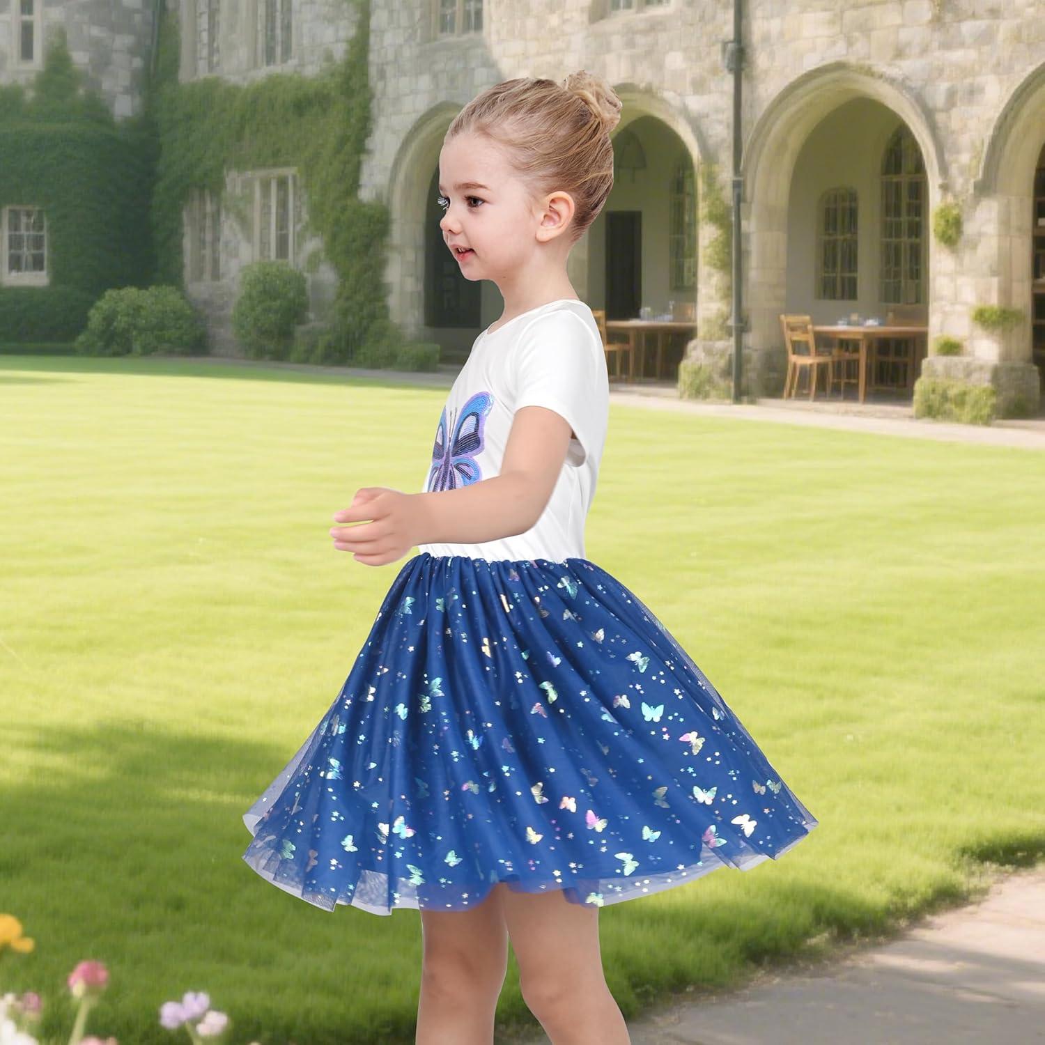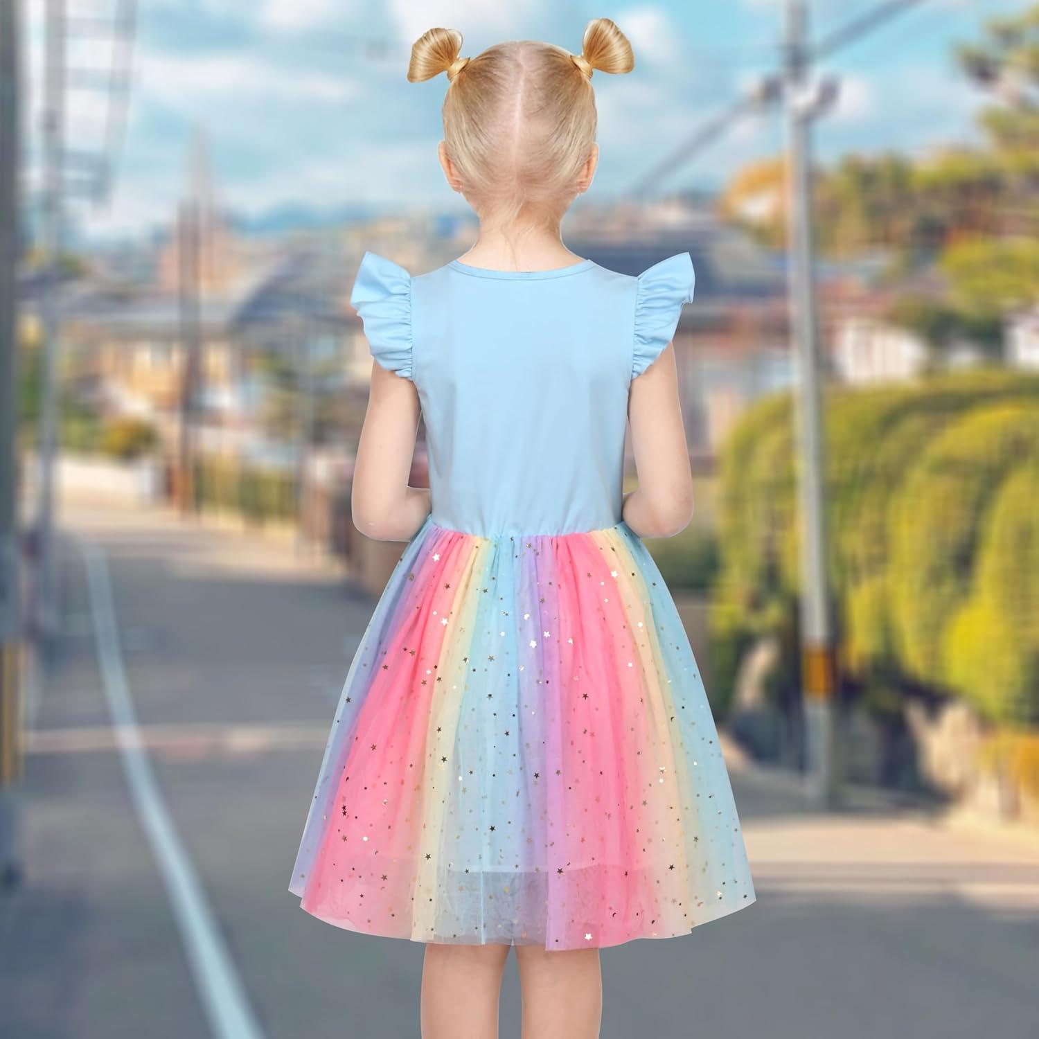 - Sunny Fashion Girls Dress Purple Short Sleeve Rainbow Tulle Skirt Birthday Party(Blue Sequin Butterfly)