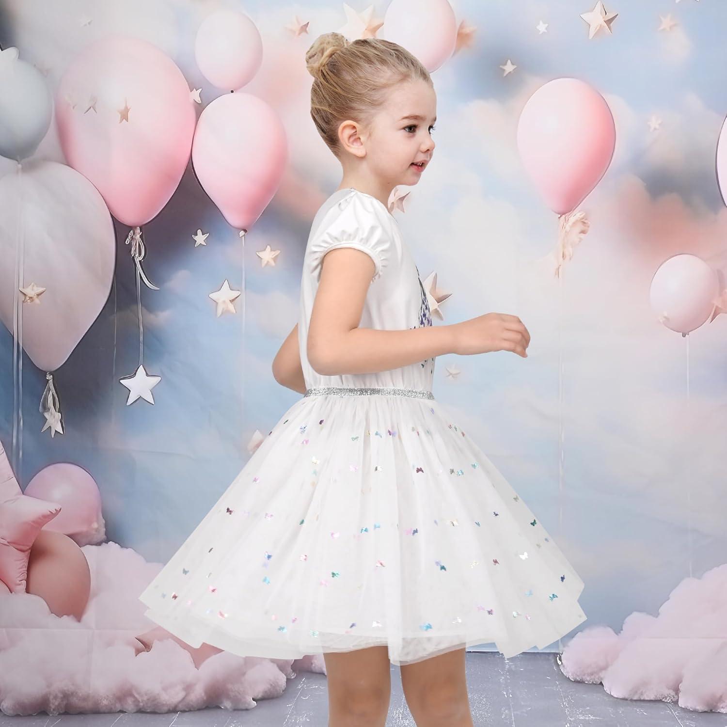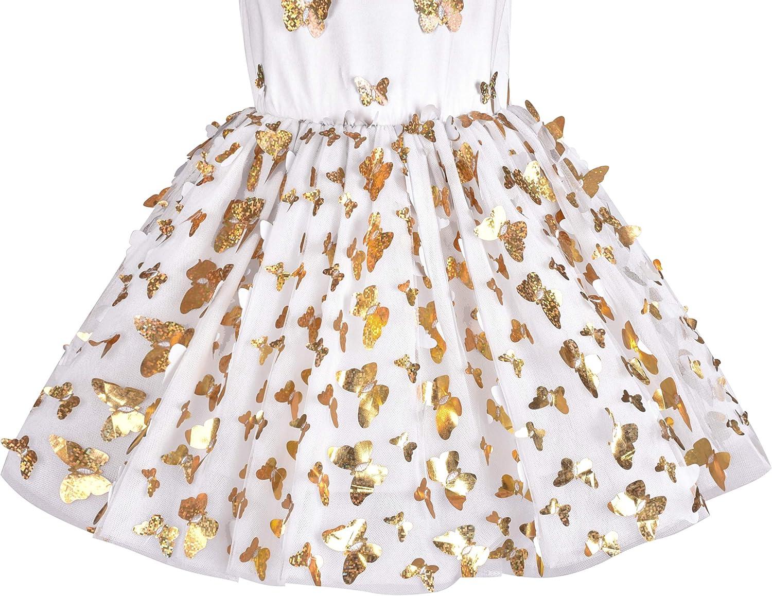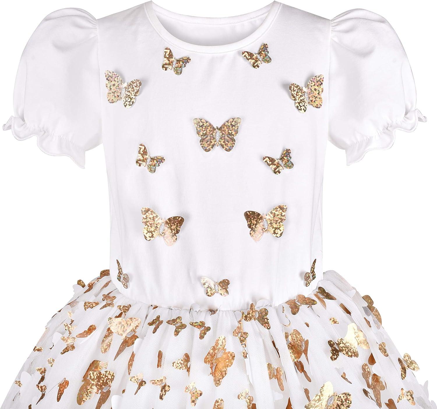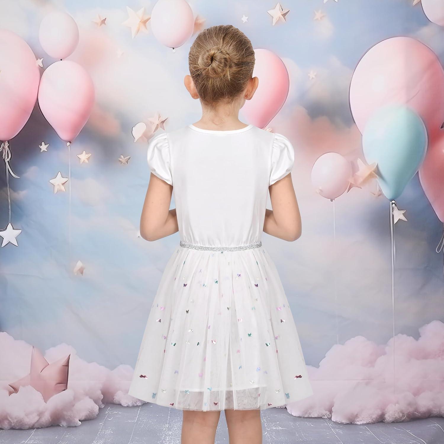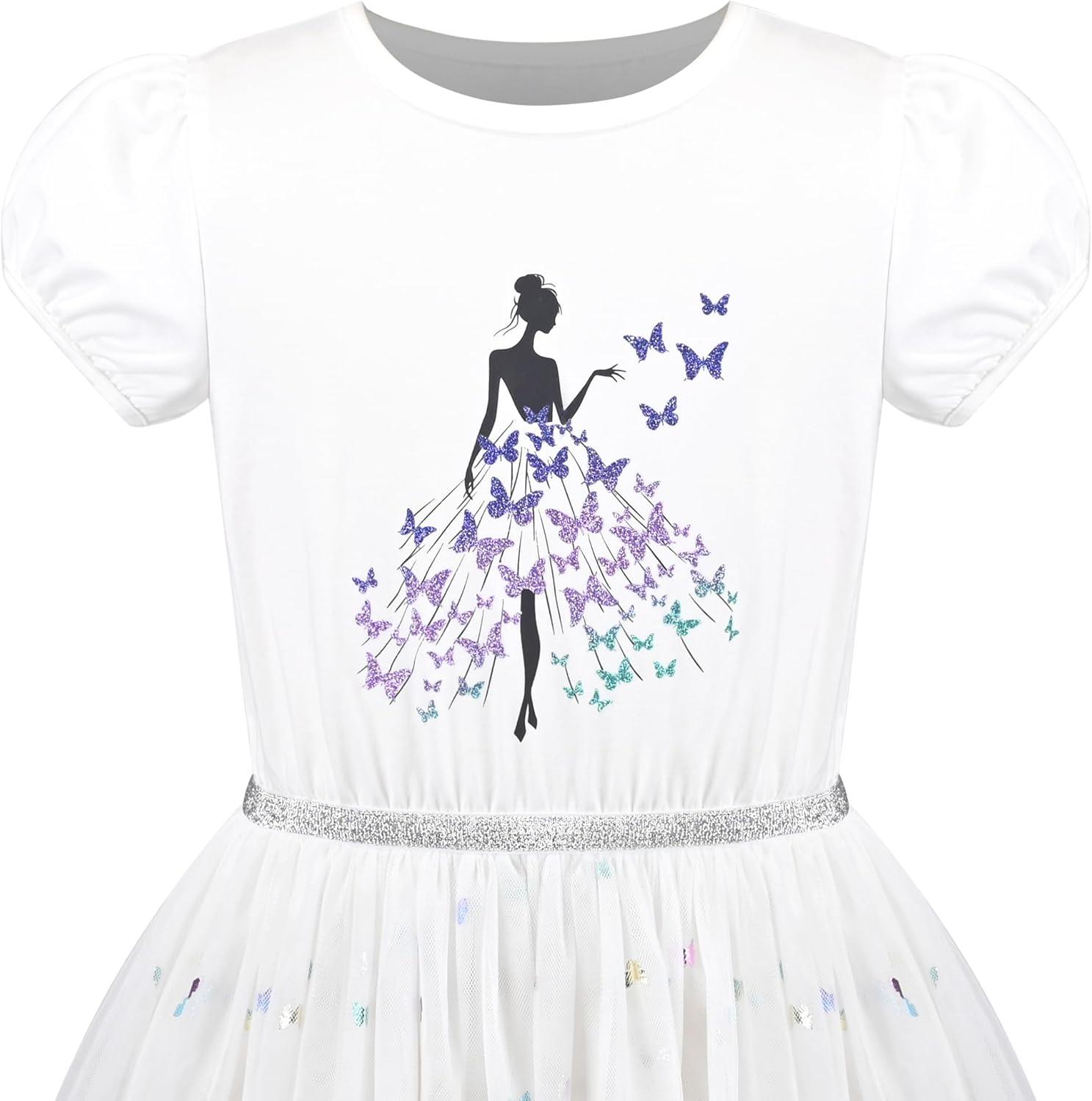 - Sunny Fashion Girls Dress Purple Short Sleeve Rainbow Tulle Skirt Birthday Party(White Butterfly)