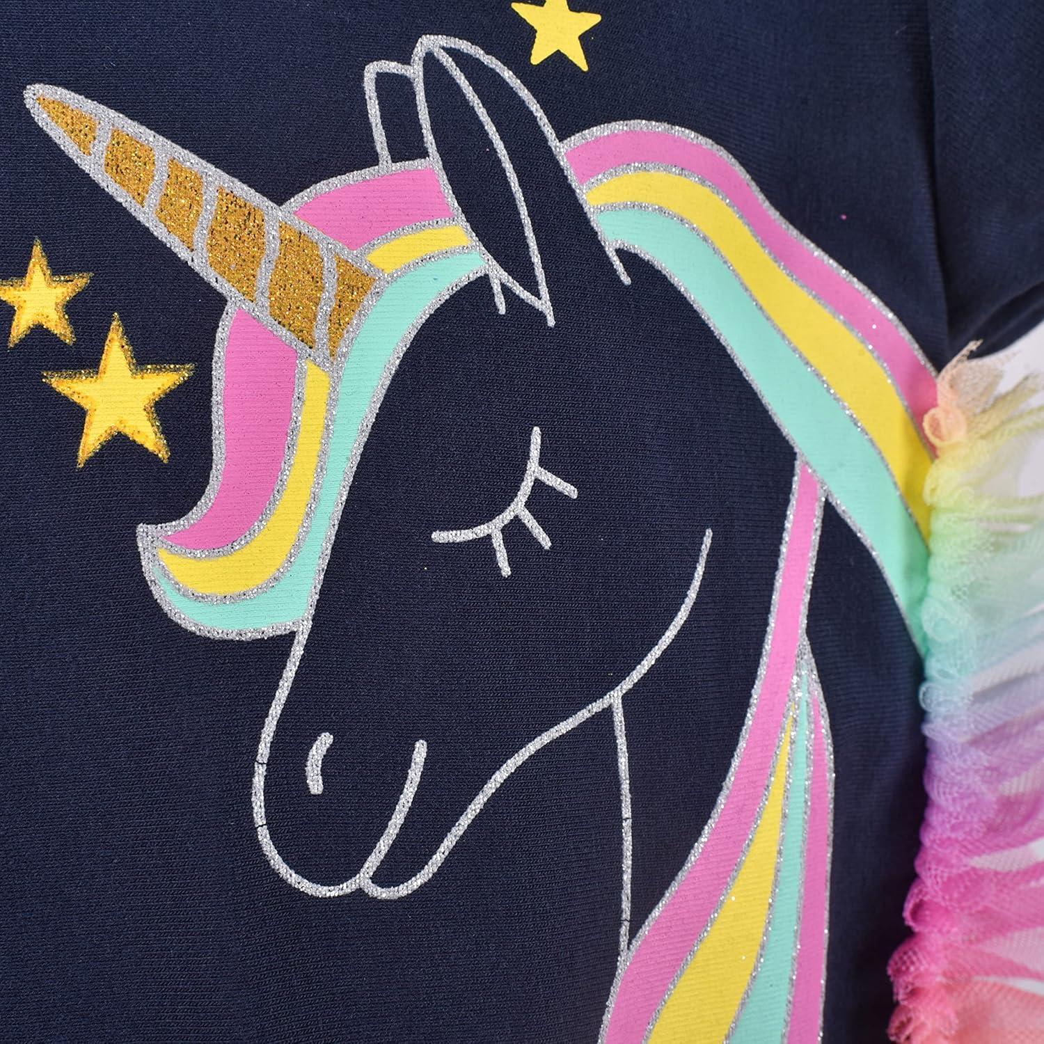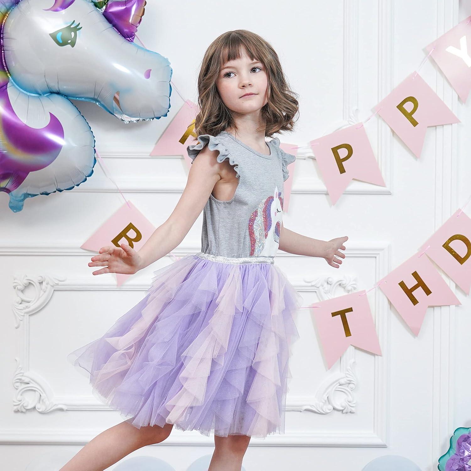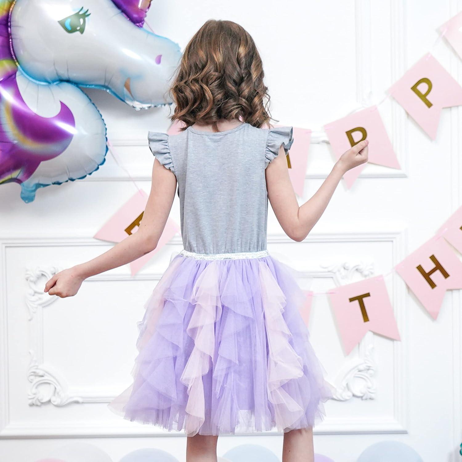 - Sunny Fashion Girls Dress Purple Short Sleeve Rainbow Tulle Skirt Birthday Party(Grey Unicorn)