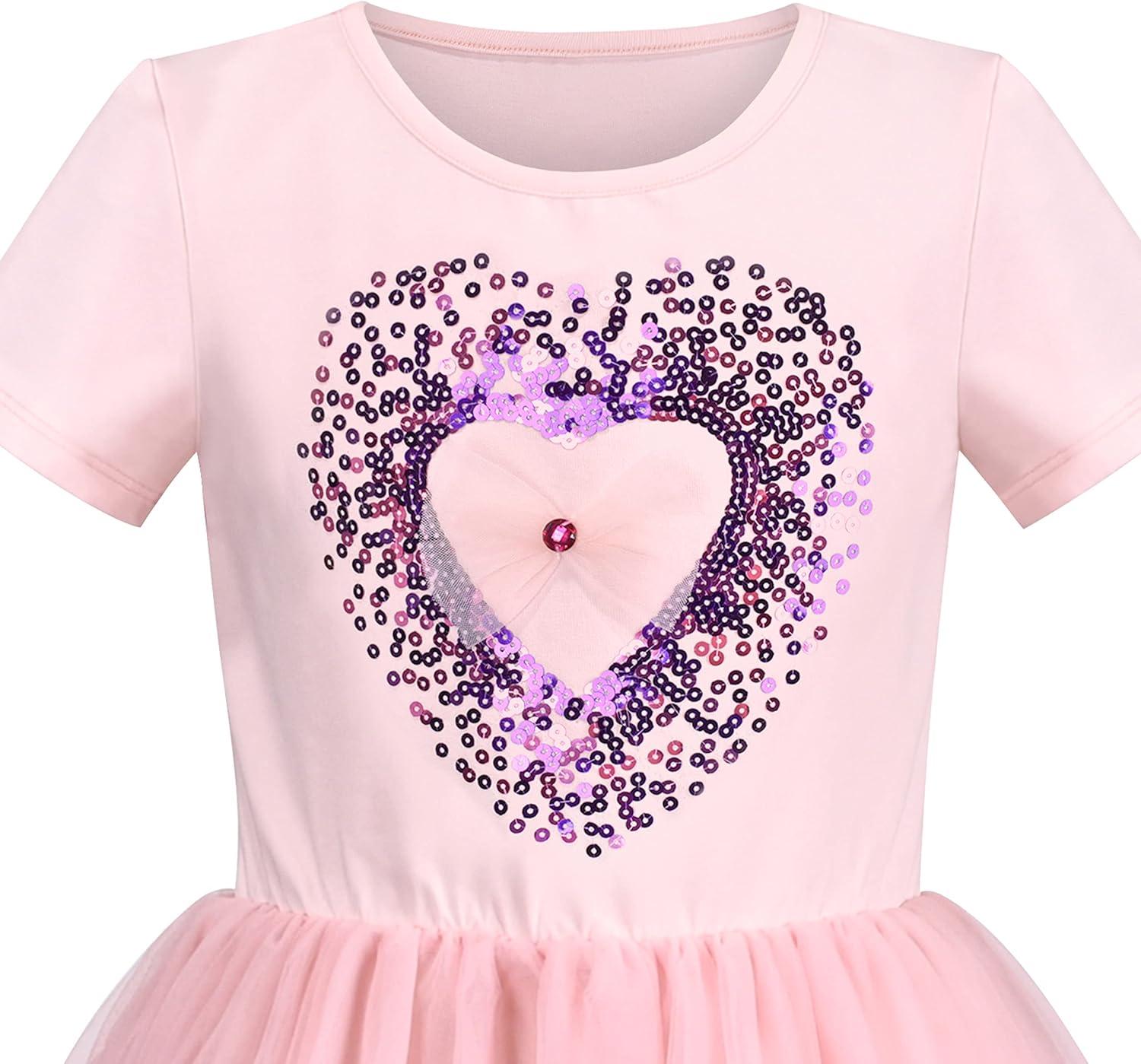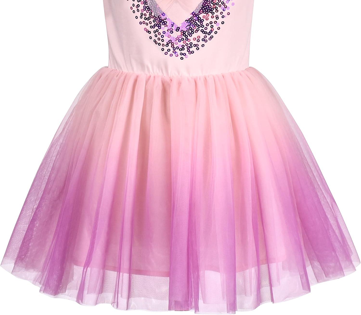 - Sunny Fashion Girls Dress Purple Short Sleeve Rainbow Tulle Skirt Birthday Party(Pink Sequin)