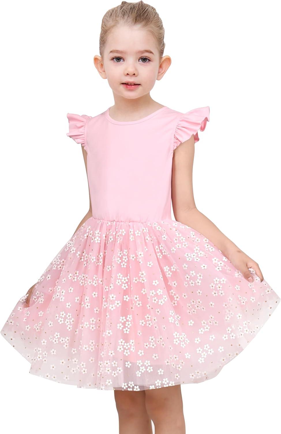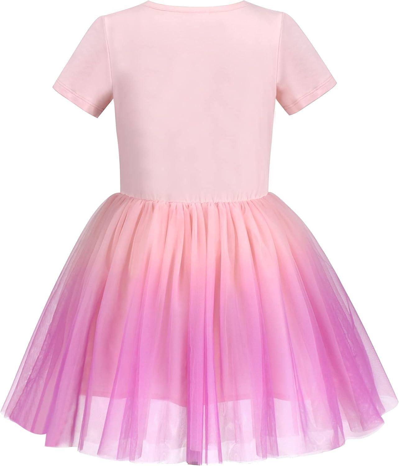 - Sunny Fashion Girls Dress Purple Short Sleeve Rainbow Tulle Skirt Birthday Party(Pink Gradient)
