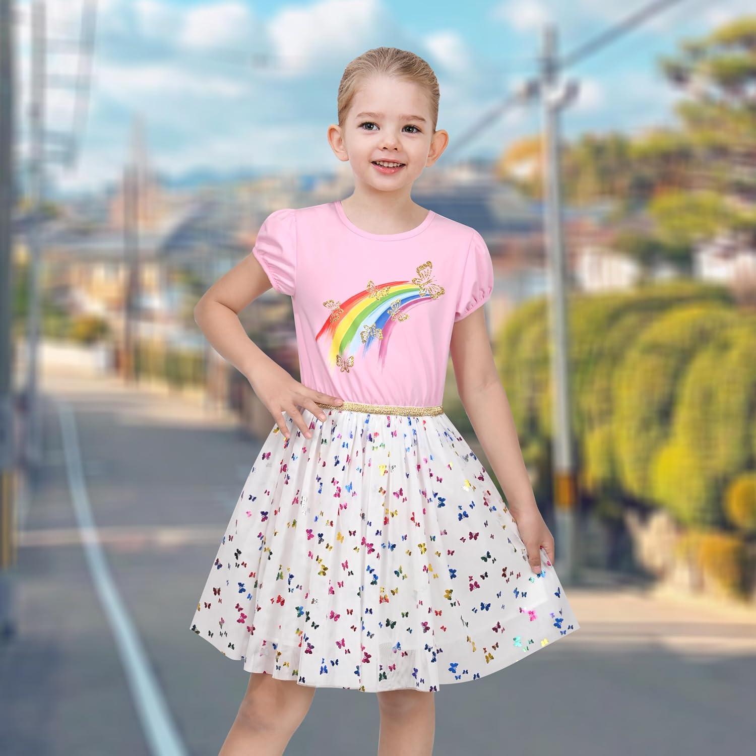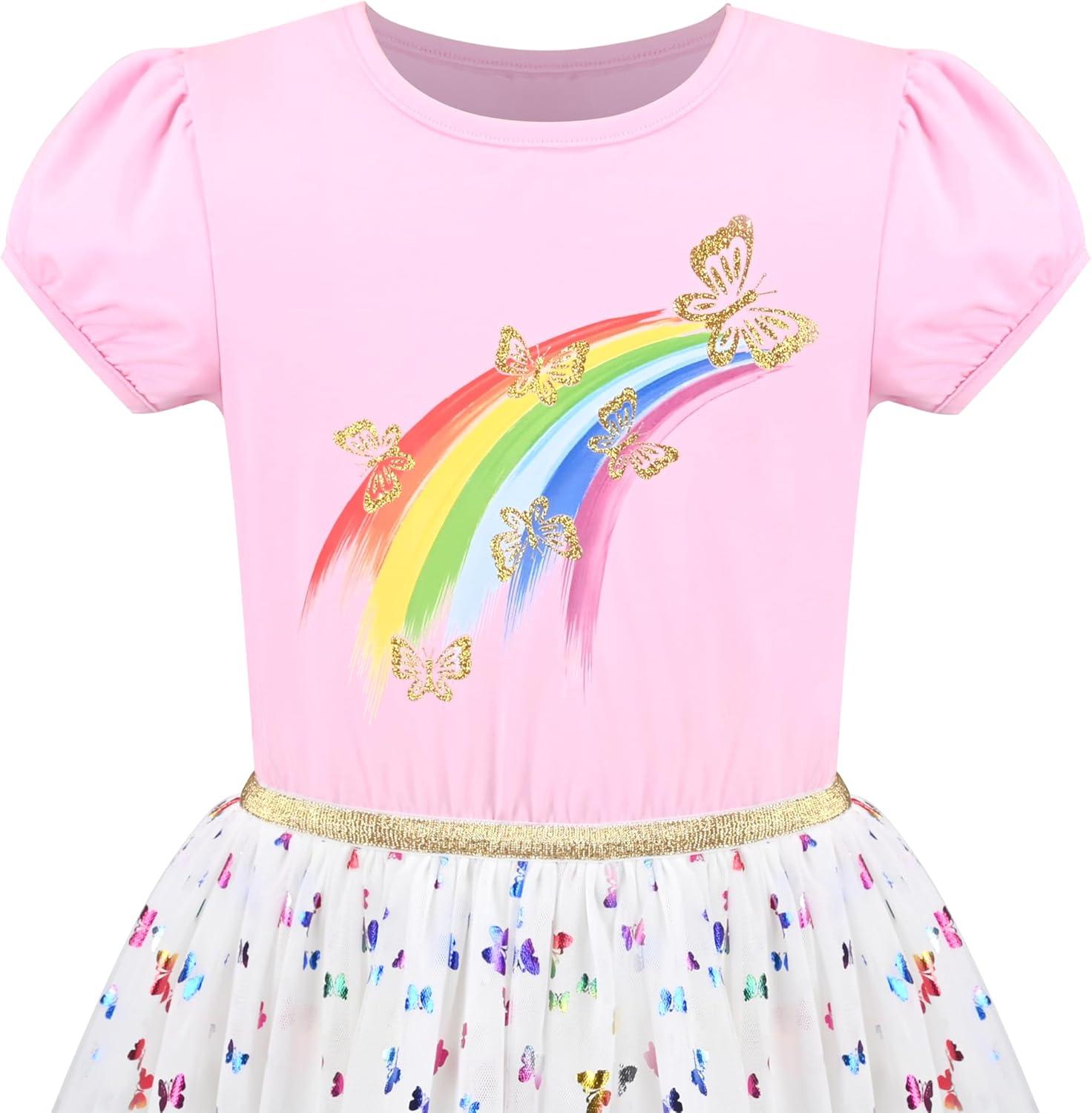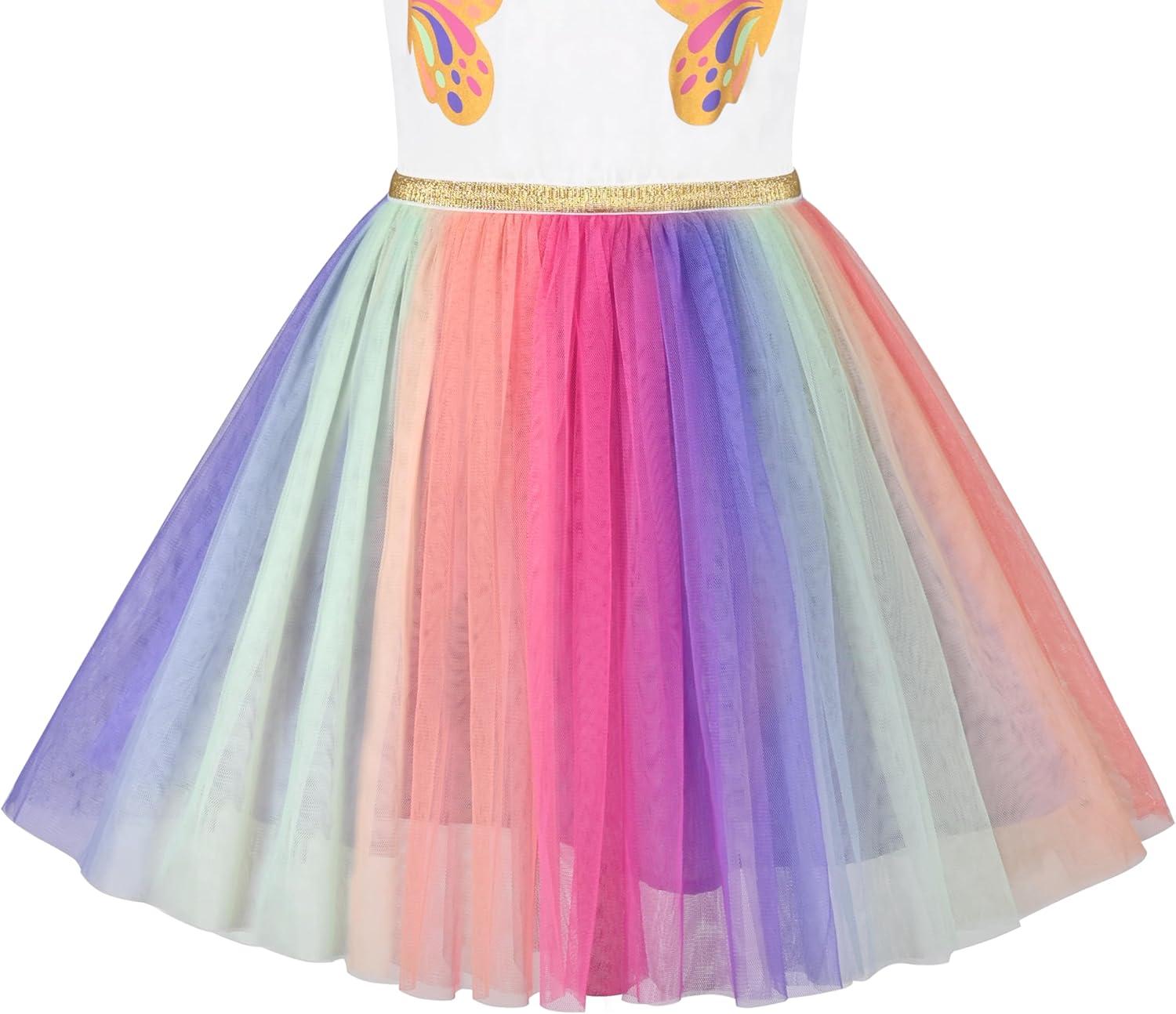 - Sunny Fashion Girls Dress Purple Short Sleeve Rainbow Tulle Skirt Birthday Party(Rainbow Butterfly)