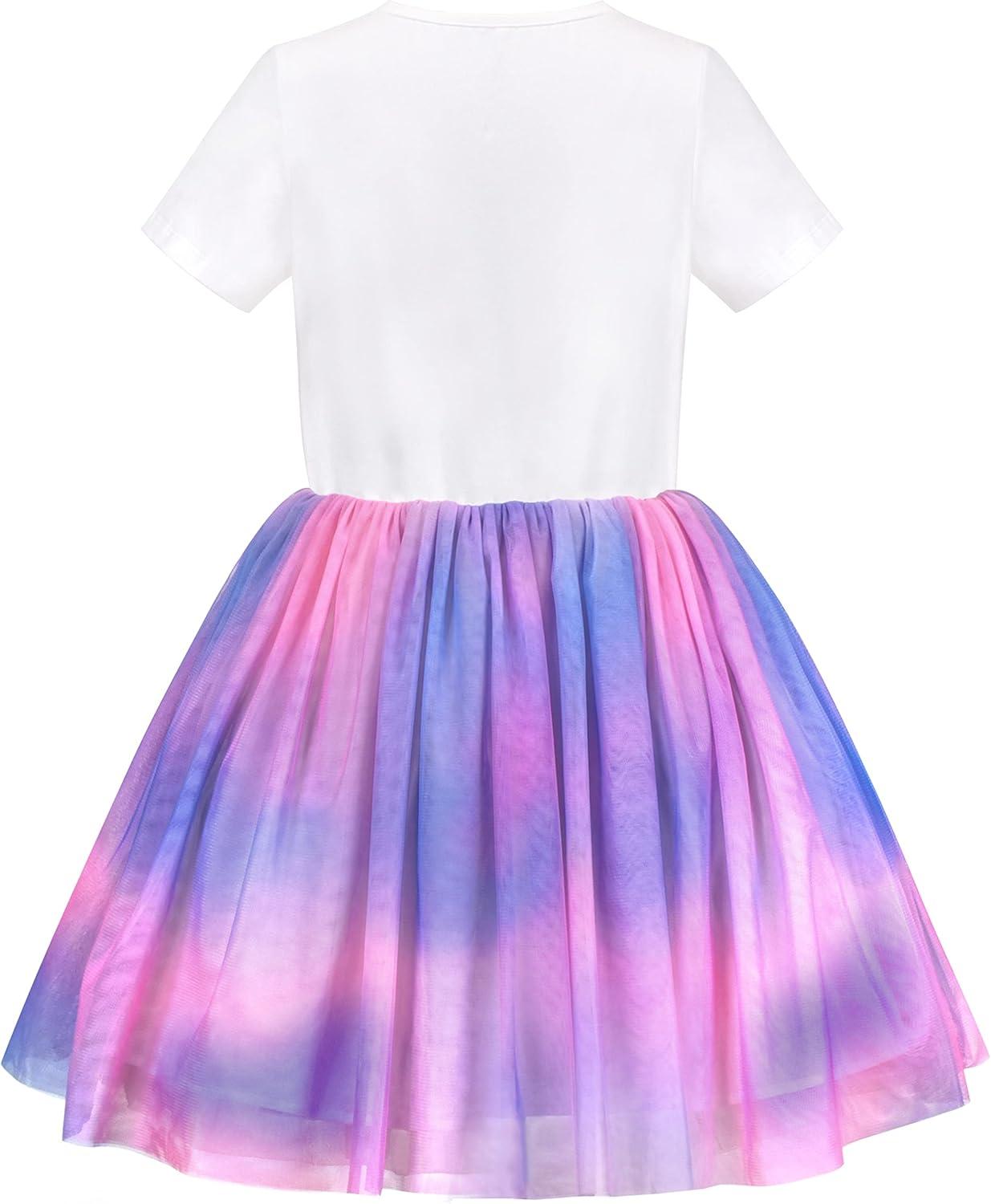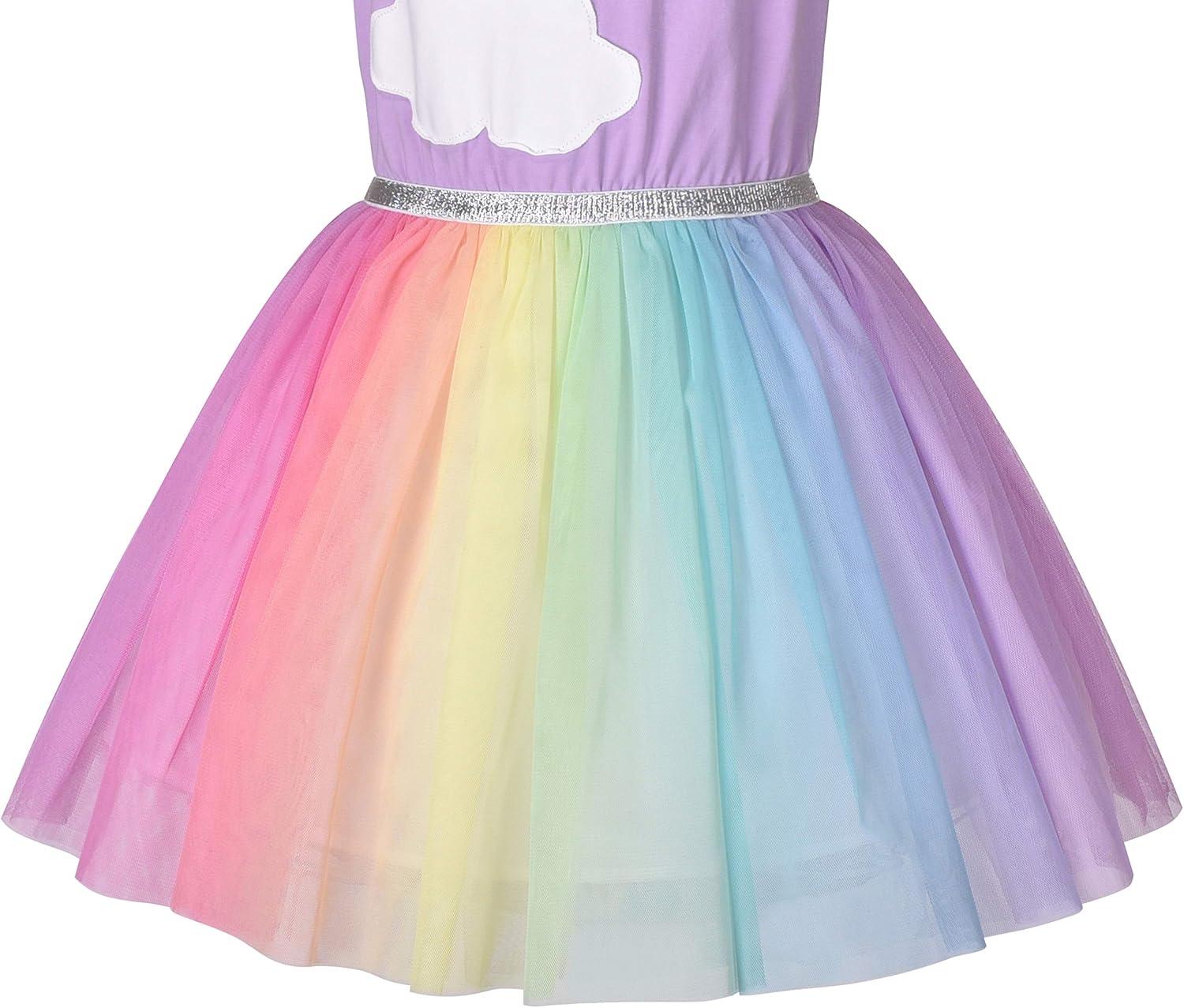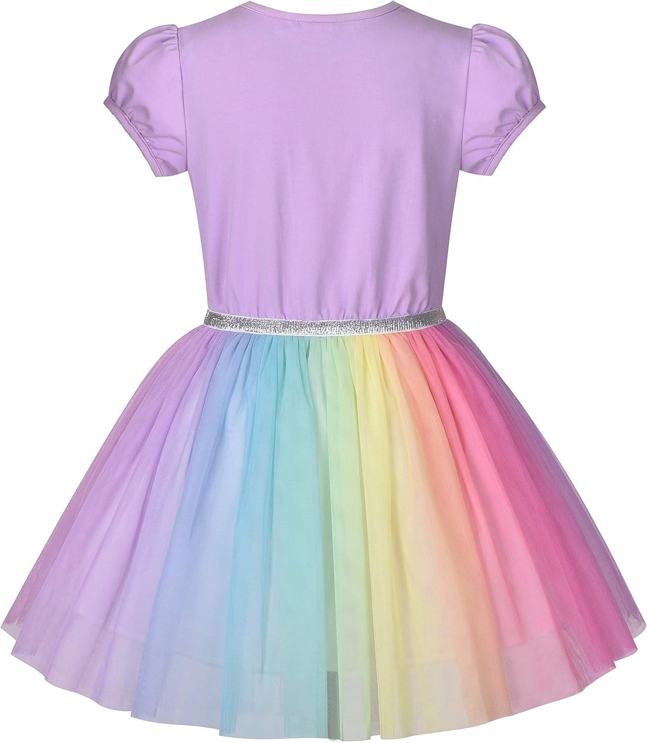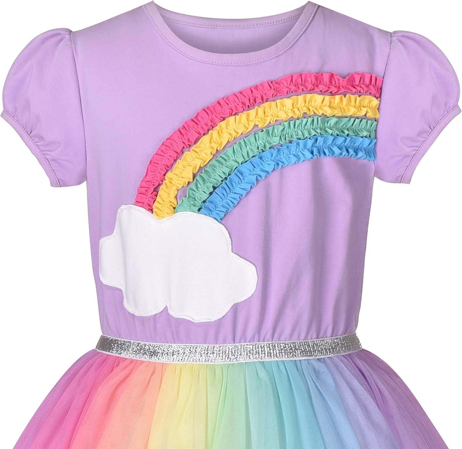 - Sunny Fashion Girls Dress Purple Short Sleeve Rainbow Tulle Skirt Birthday Party(Rainbow Unicorn)