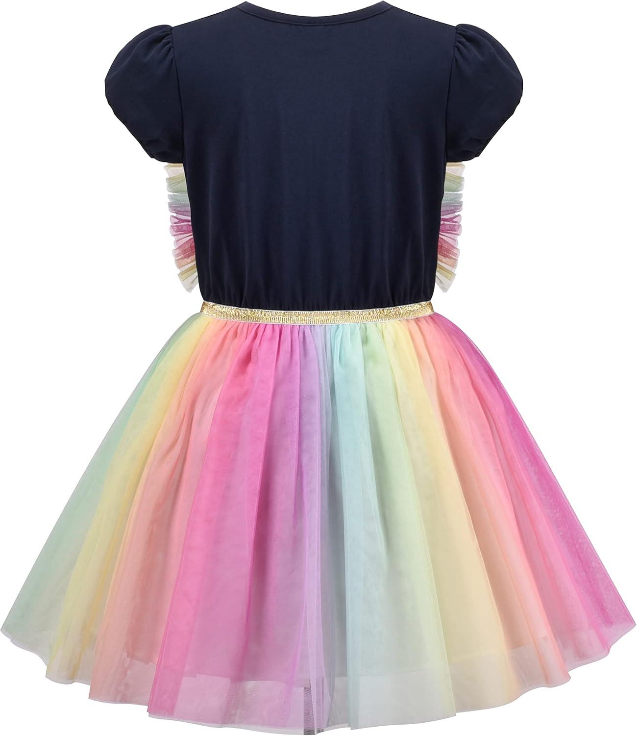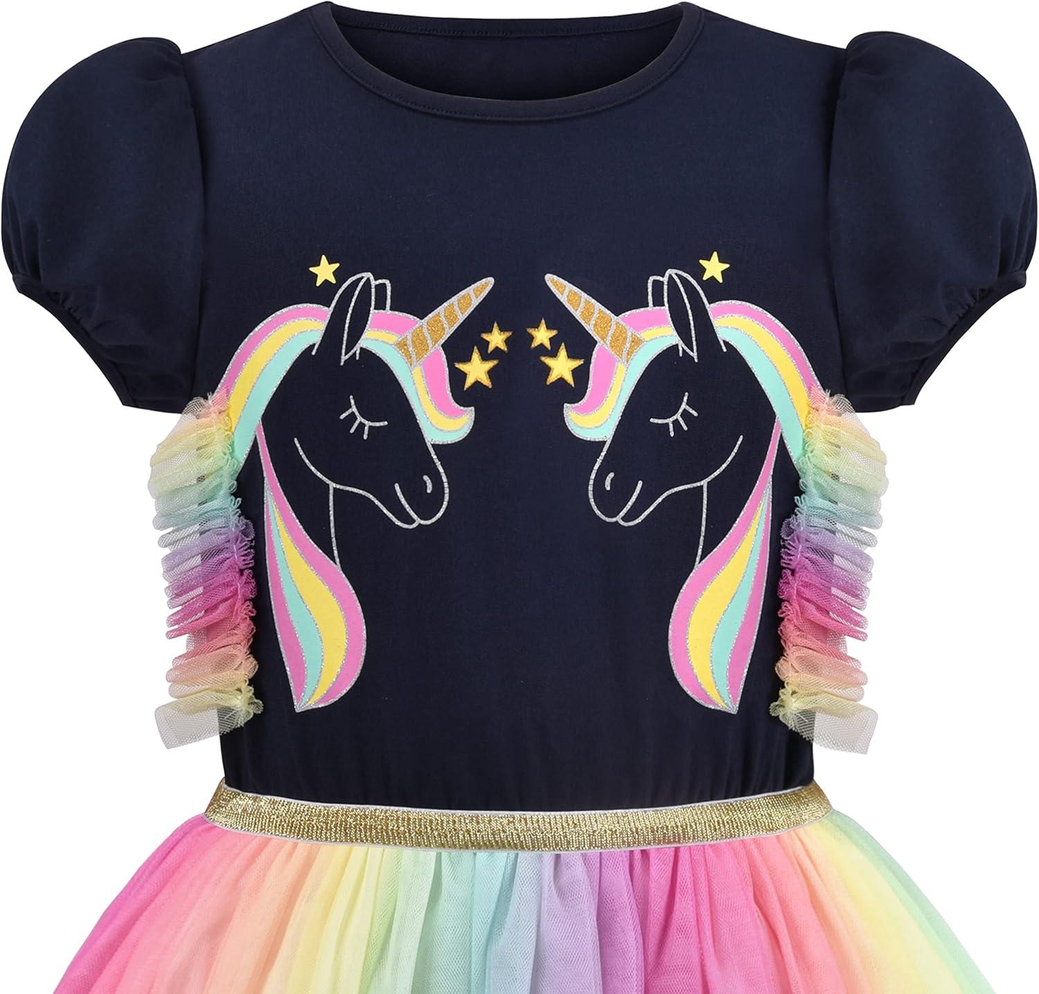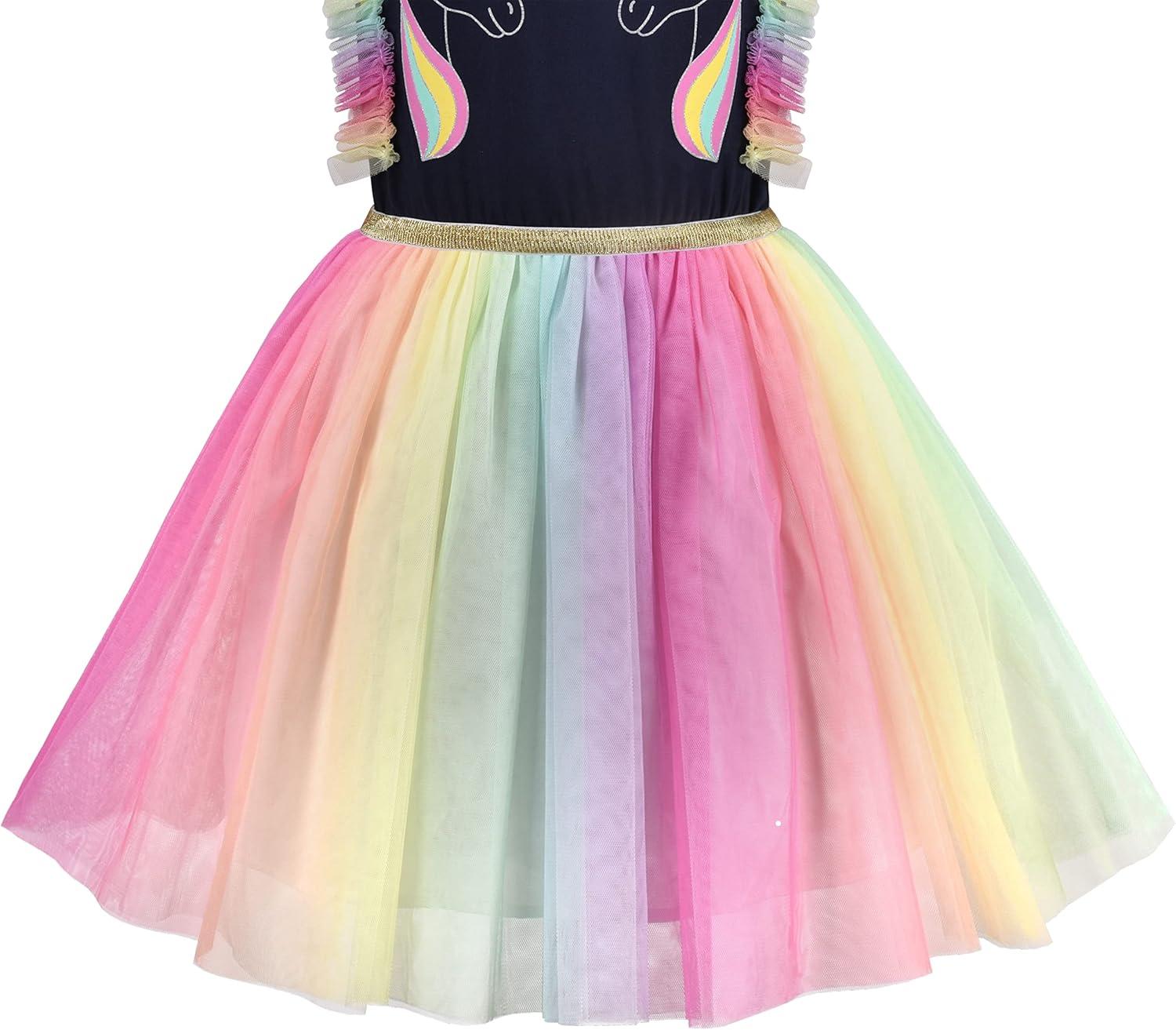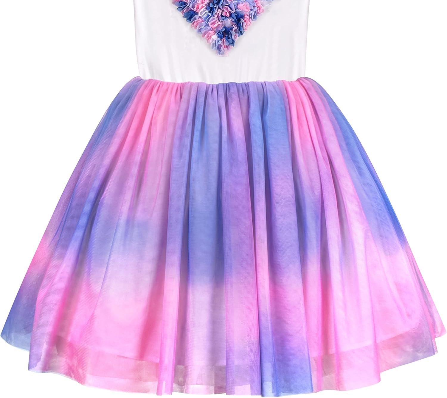 - Sunny Fashion Girls Dress Purple Short Sleeve Rainbow Tulle Skirt Birthday Party(Rainbow Unicorn)