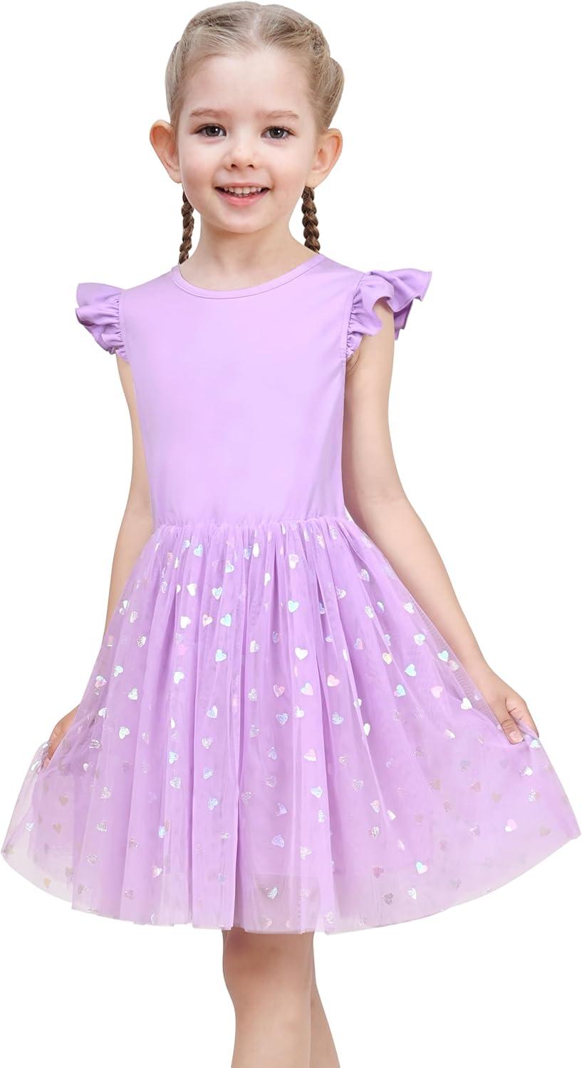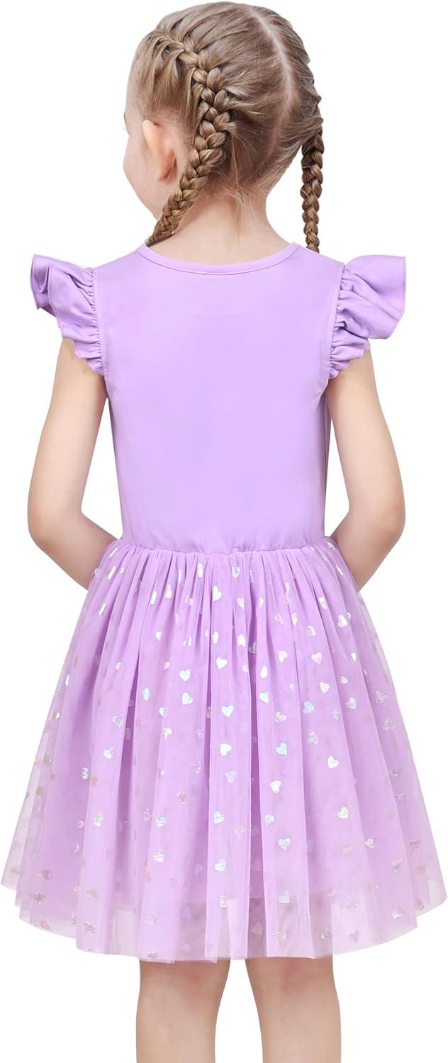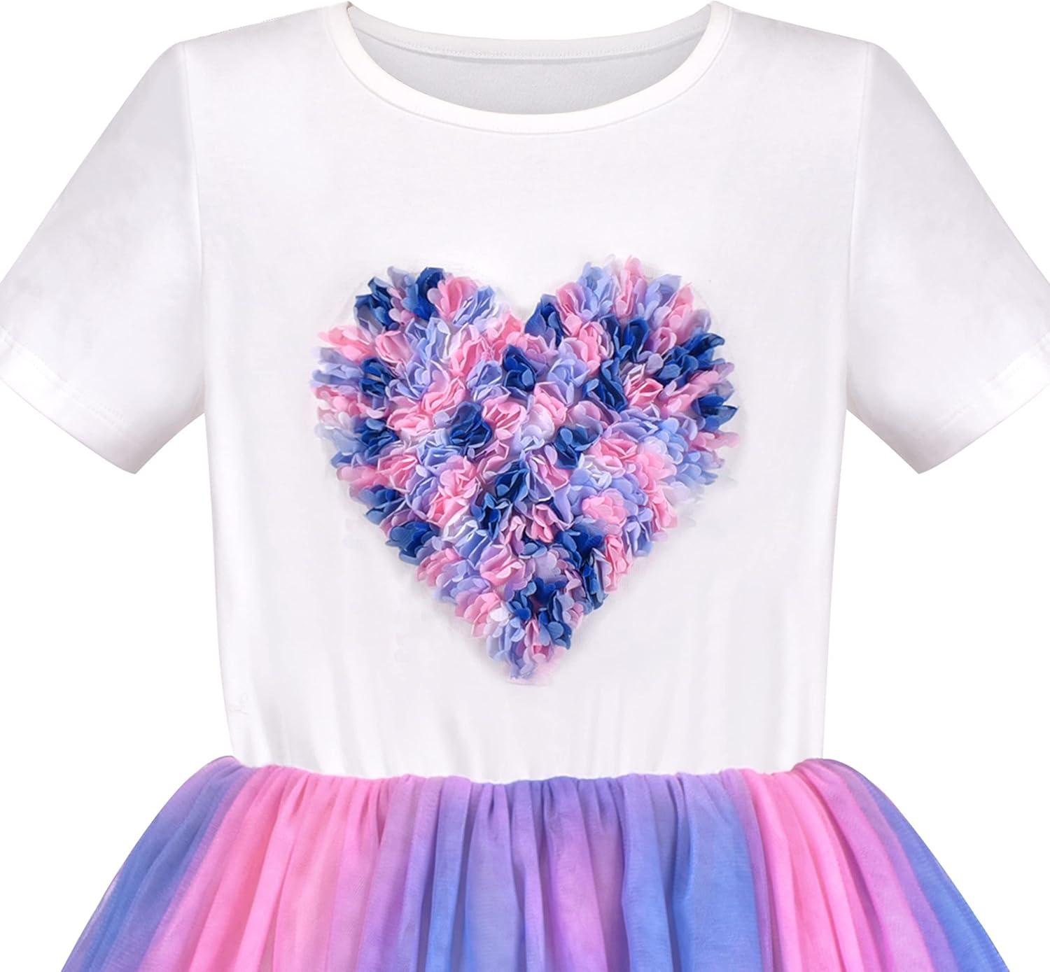 - Sunny Fashion Girls Dress Purple Short Sleeve Rainbow Tulle Skirt Birthday Party(Purple Heart)