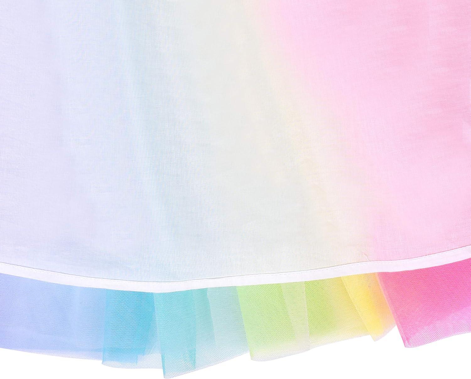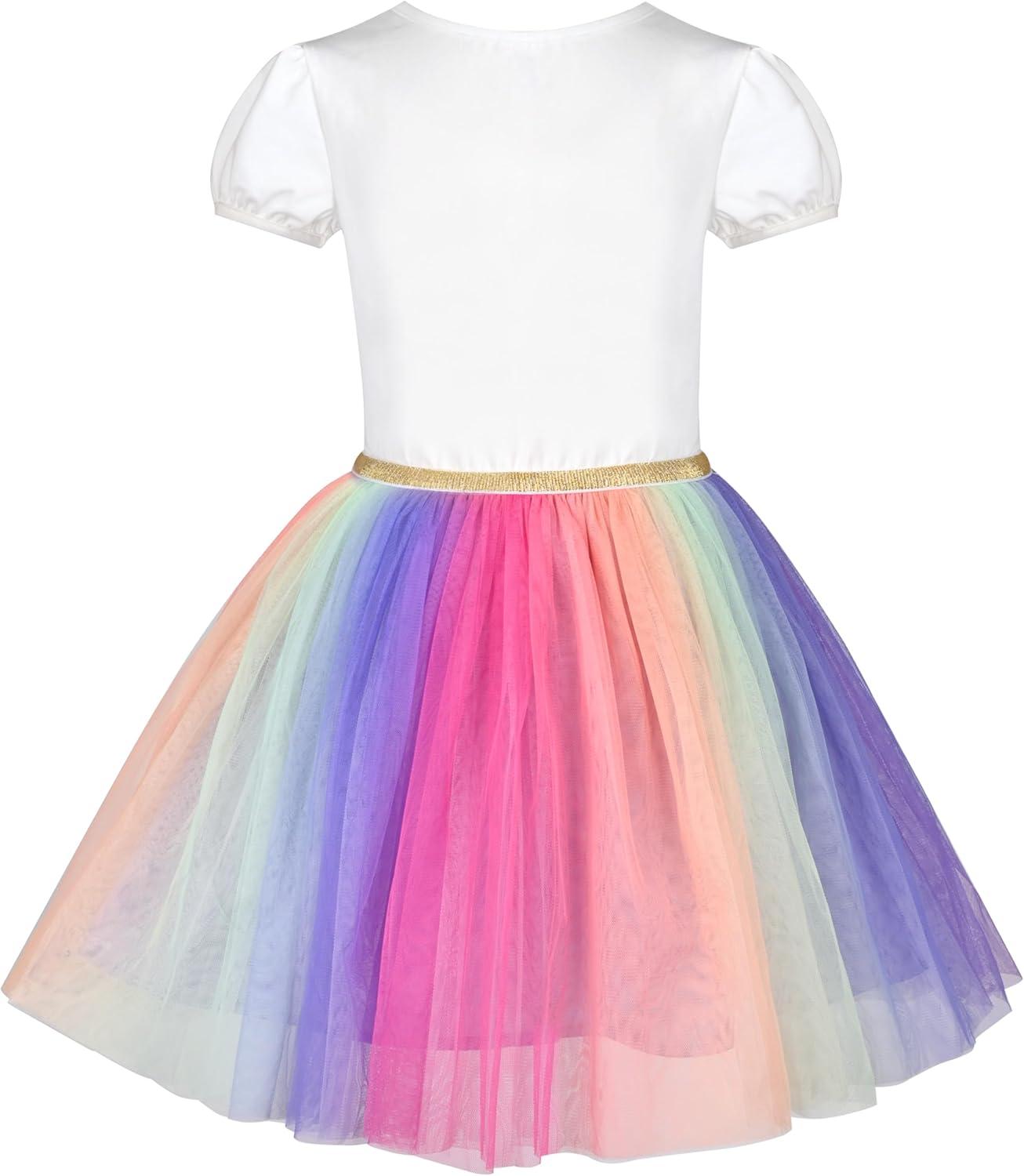 - Sunny Fashion Girls Dress Purple Short Sleeve Rainbow Tulle Skirt Birthday Party(Pink Rainbow)