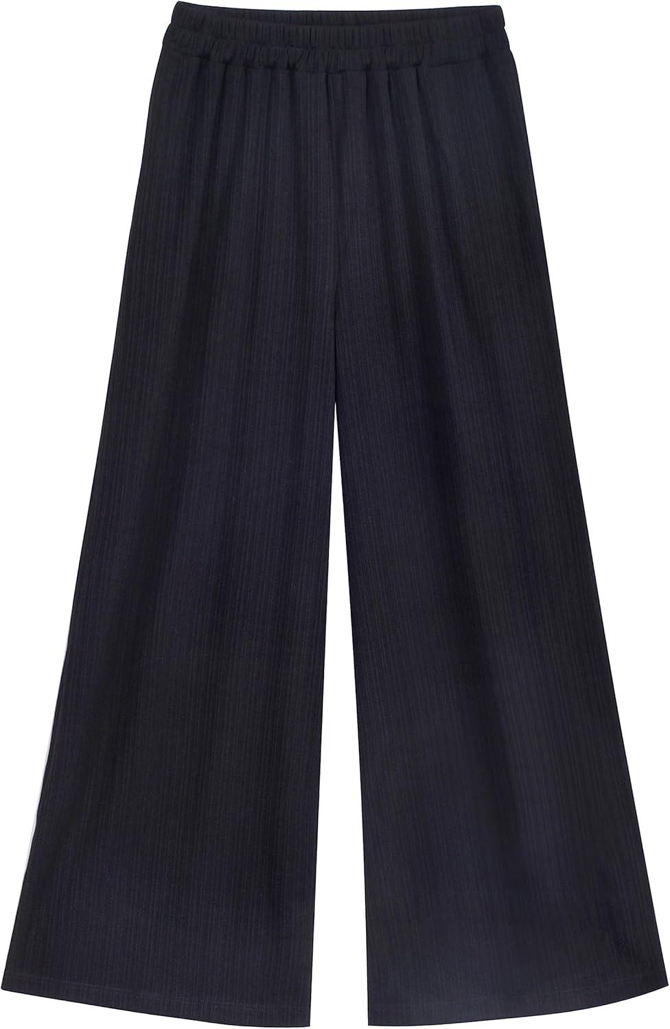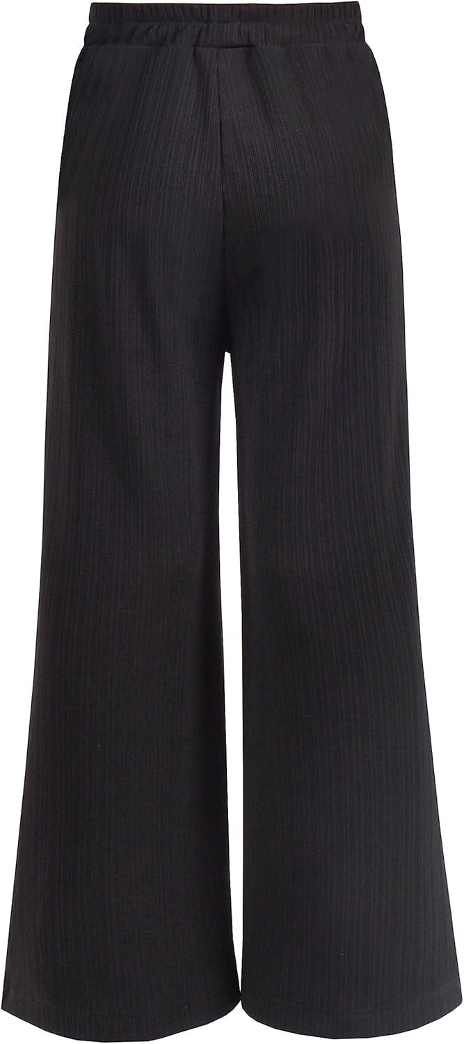 Sunny Fashion Girls Pants Straight Leg Pants Brown Ribbed Knit Gym Casual(Black)