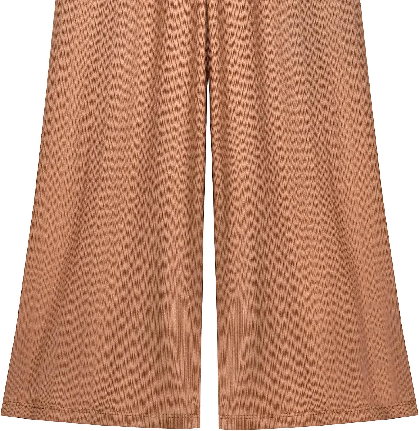 Sunny Fashion Girls Pants Straight Leg Pants Brown Ribbed Knit Gym Casual(Beige)