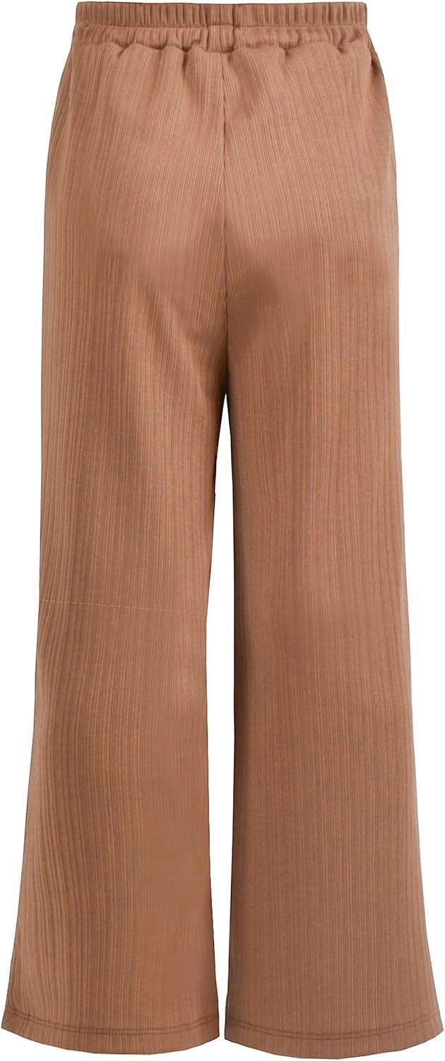 Sunny Fashion Girls Pants Straight Leg Pants Brown Ribbed Knit Gym Casual(Brown)